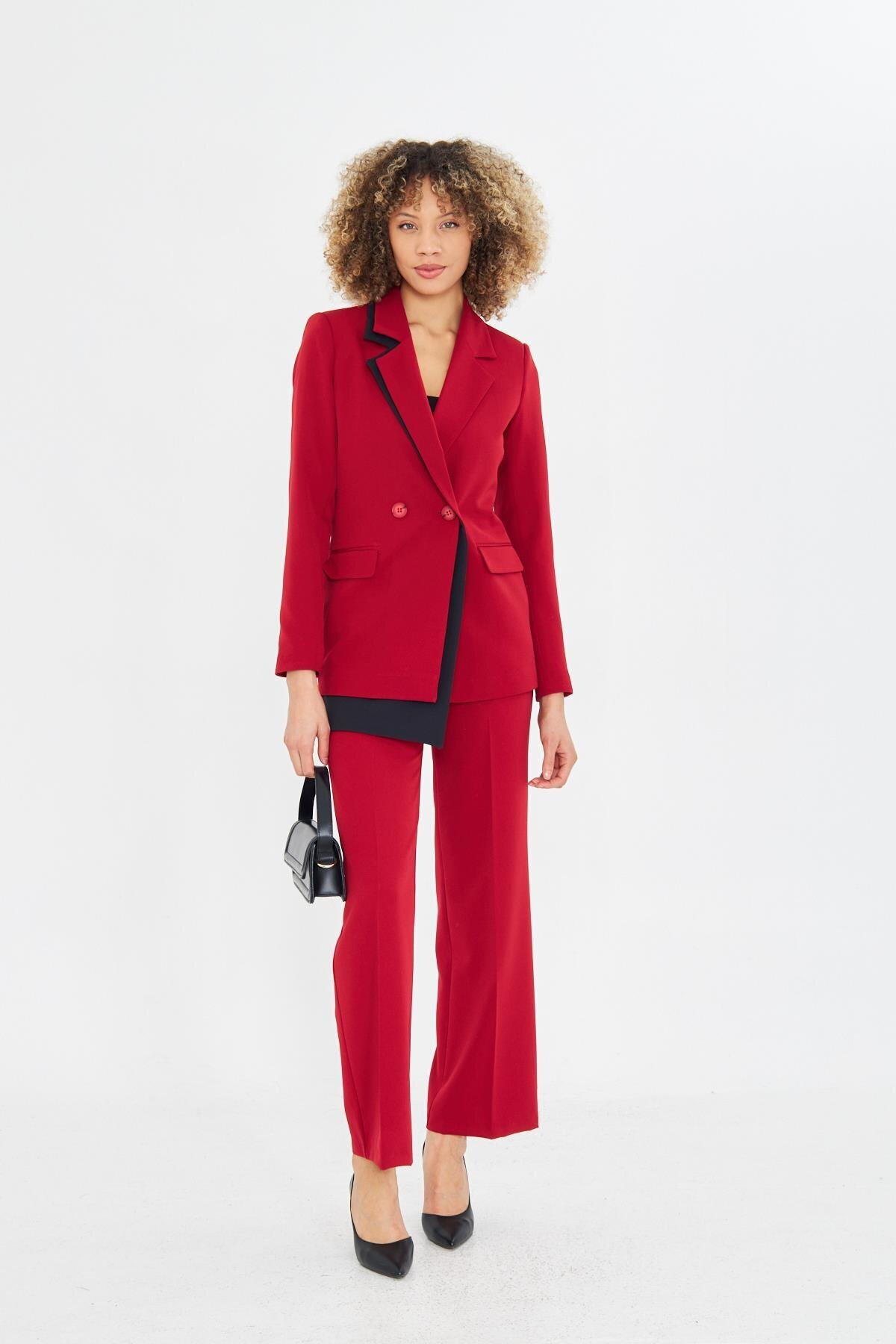 - Canlı kırmızı rengiyle dikkat çeken bu takım, günlük kullanıma uygun casual bir tarz sunar.