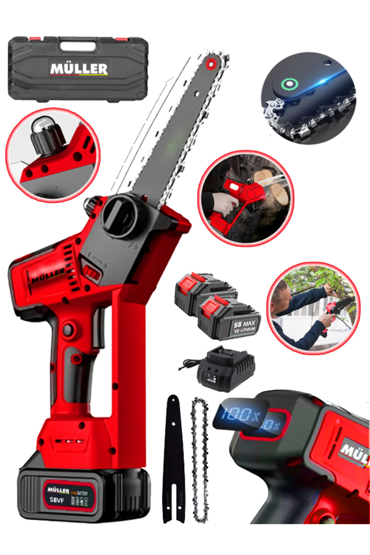 Alman GT Series 58Vf Dijital Şarj Göstergeli Şarjlı Akülü Dal Kesme Budama Testere Makinesi