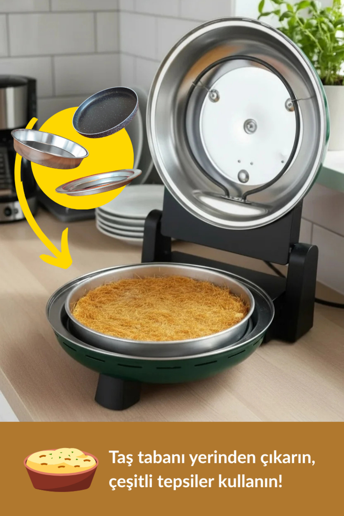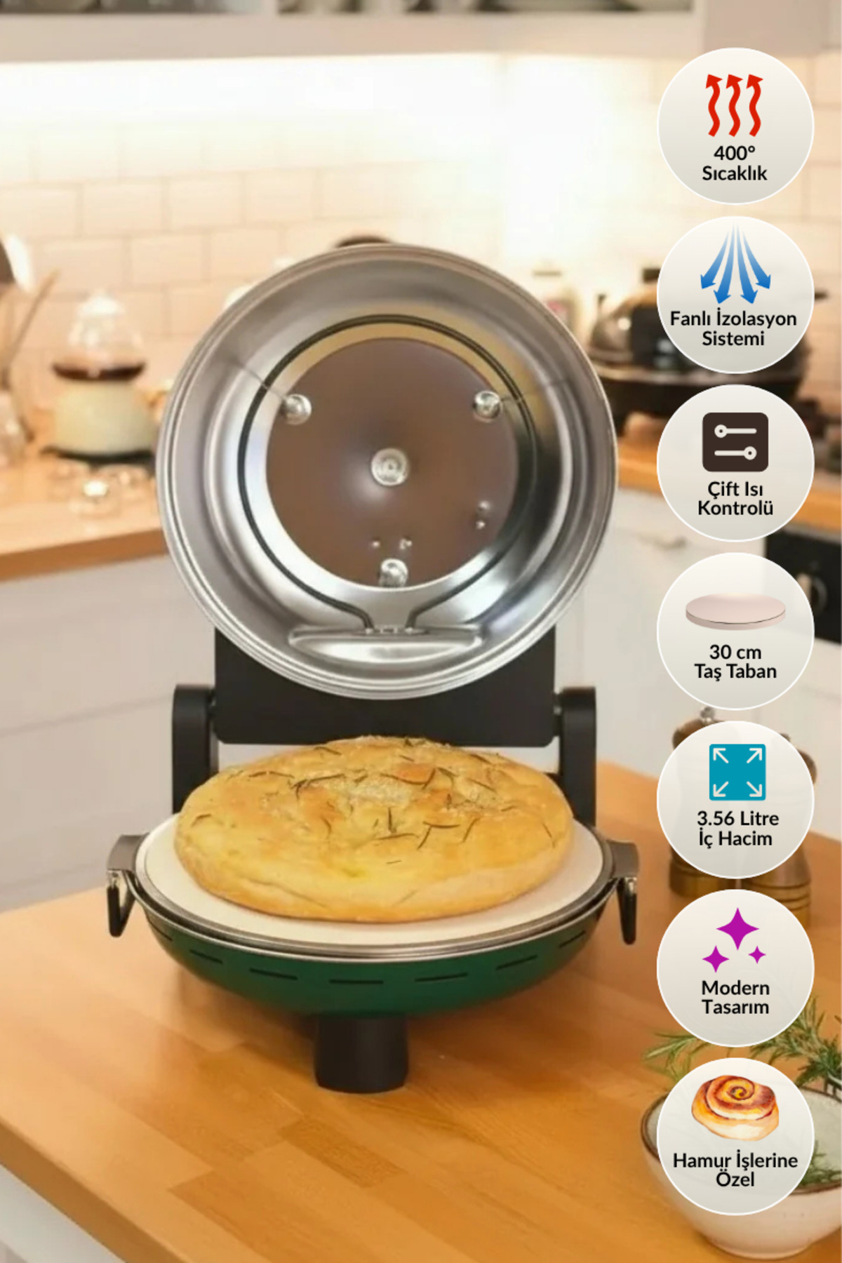 Çok Amaçlı Taş Fırın | Pizza, Lahmacun, Ekmek ve Tandır Yapma Makinesi – 31 cm Doğal Taş Yeşil