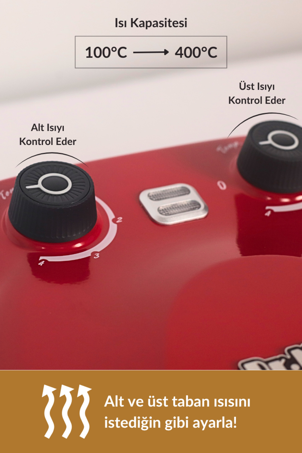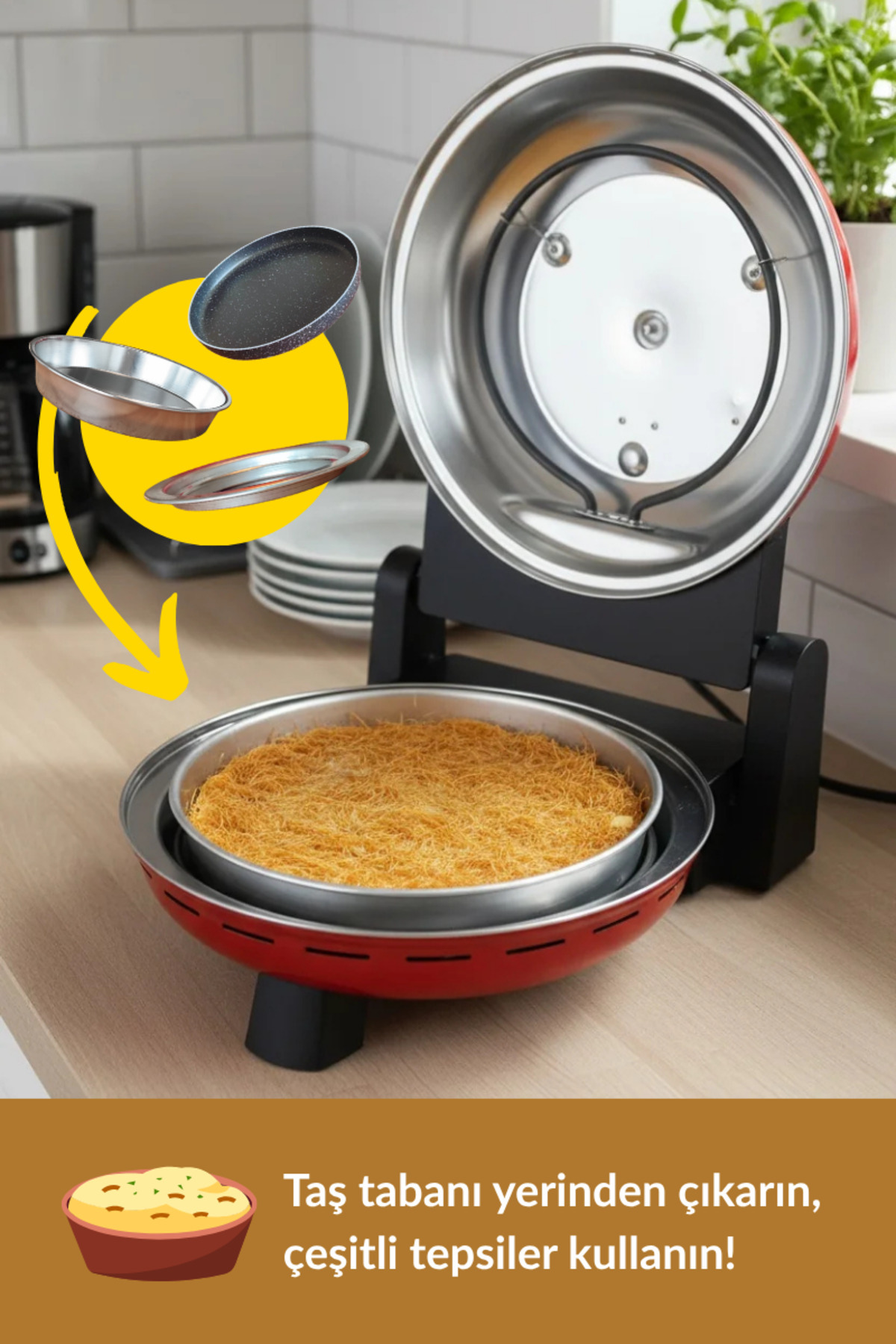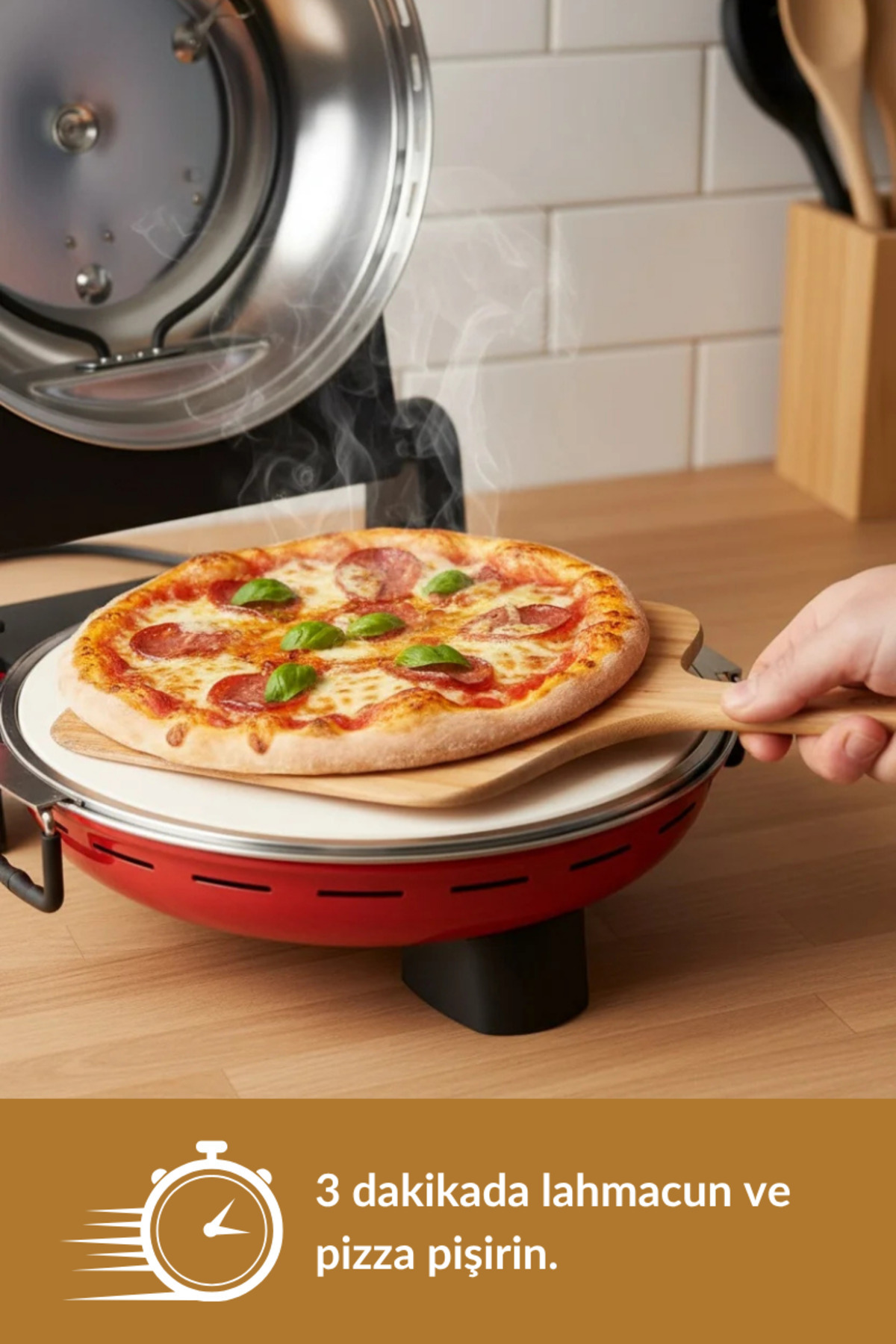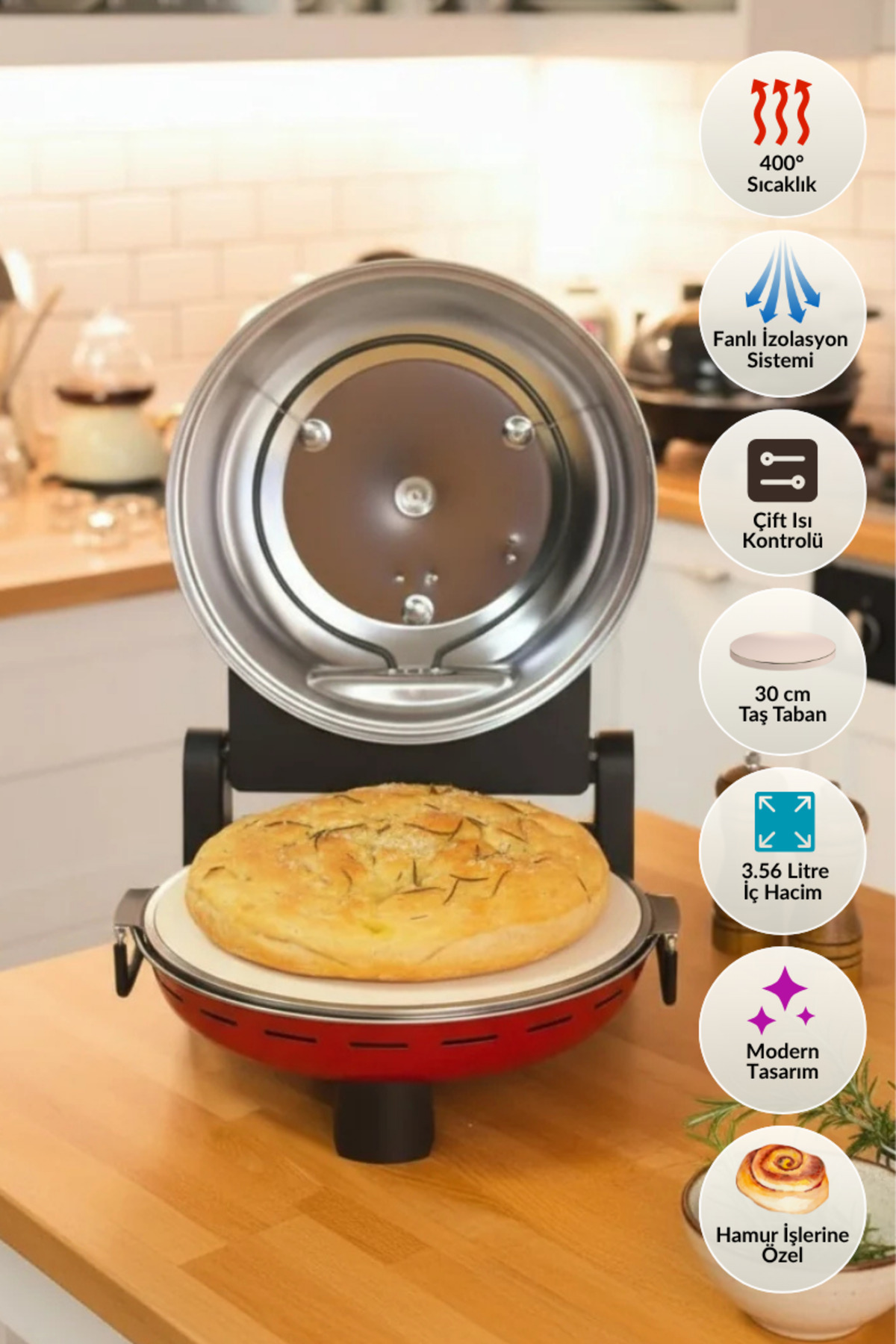 Çok Amaçlı Taş Fırın | Pizza, Lahmacun, Ekmek ve Tandır Yapma Makinesi – 31 cm Doğal Taş Kırmızı