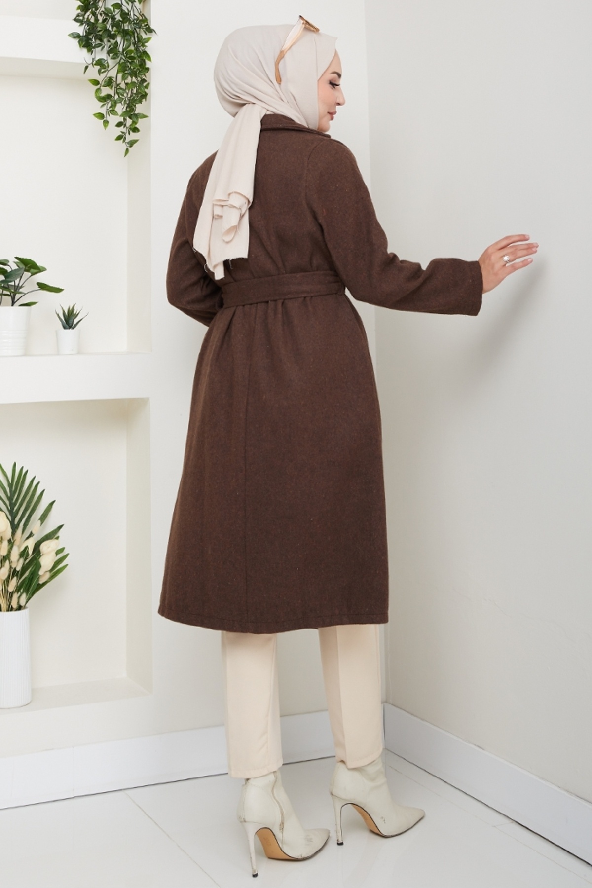 Feral Kuşaklı Kaşe Kaban 1306 - Kahve