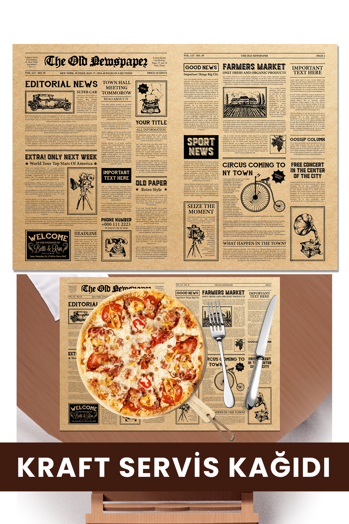 500 adet kraft baskılı amerikan servis kağıdı, yemeklerinizi şık bir sunumla servis etmenize olanak tanır