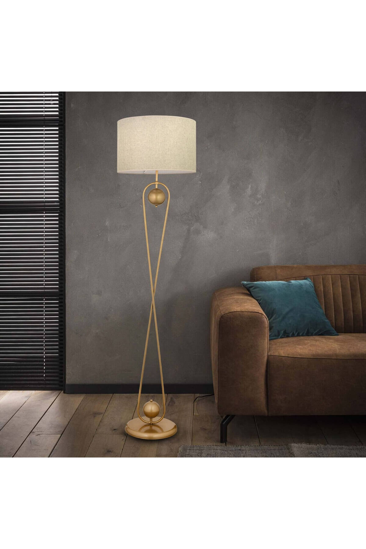 Evinize modern ve zarif bir hava katmak istiyorsanız, bu eskitme lambader tam size göre! Kumaş şapkasıyla yumuşak bir ışık yayarak ortama sıcak bir atmosfer oluşturur.