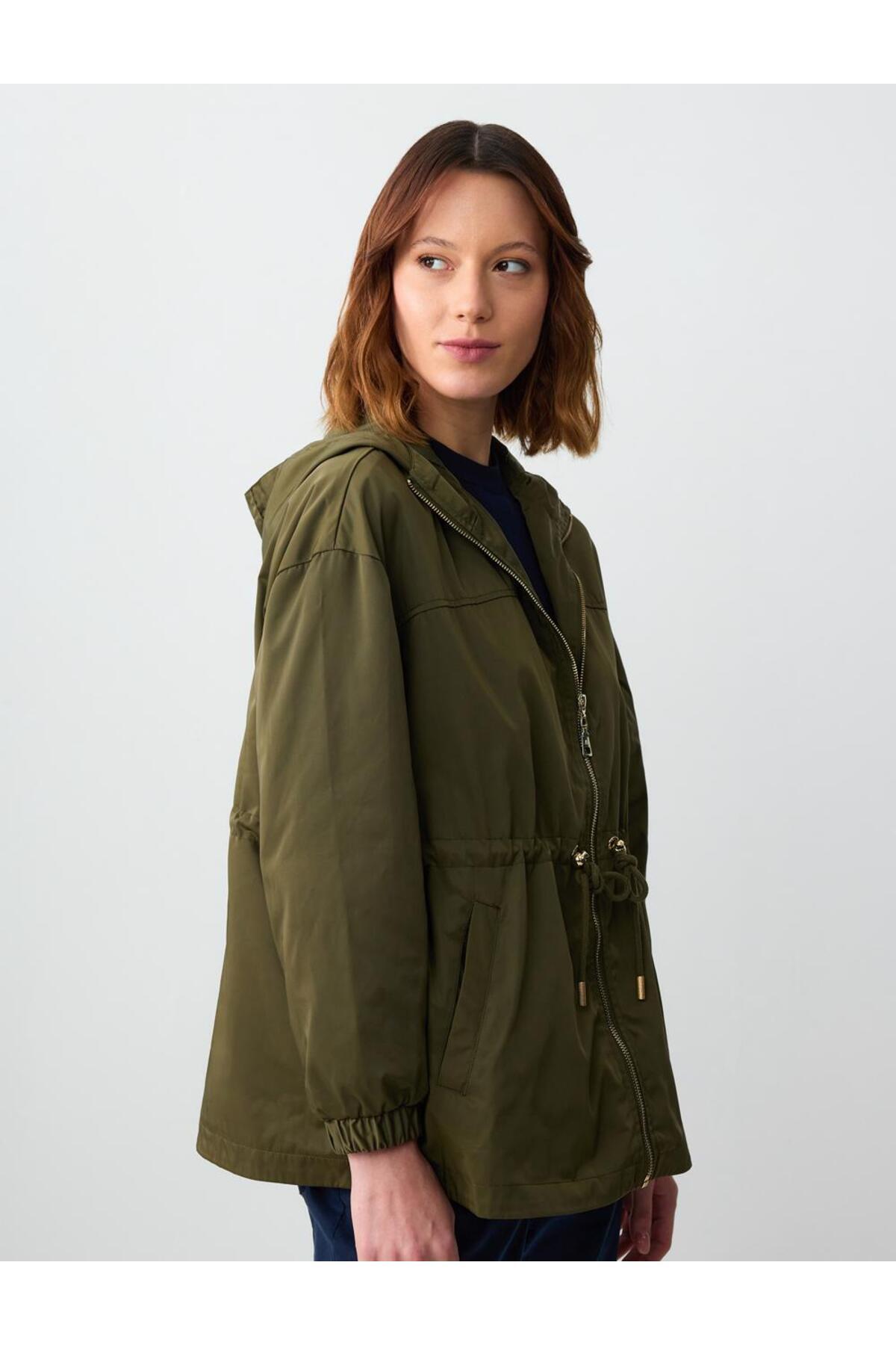 • Haki Beli Büzgülü Kapüşonlu Dokuma Yağmurluk