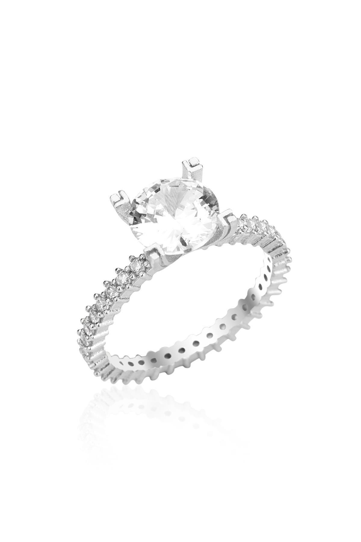 925 ayar gümüş altın yaldızlı pırlanta modeli zirkon tek taşlı tamtur yüzük.