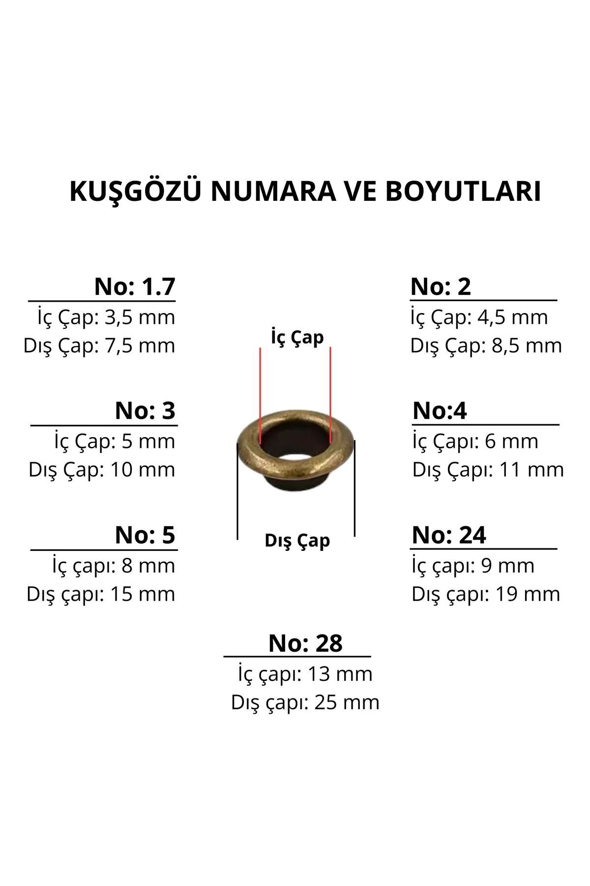✔️ Boyut: No: 2 - [İç Çap : 4.5mm ] - [Dış Çap: 8.5 mm] Ürün Özellikleri:🔸Çanta, cüzdan, kemer, çadır ve sineklik gibi ürünlerde kullanım için idealdir.
