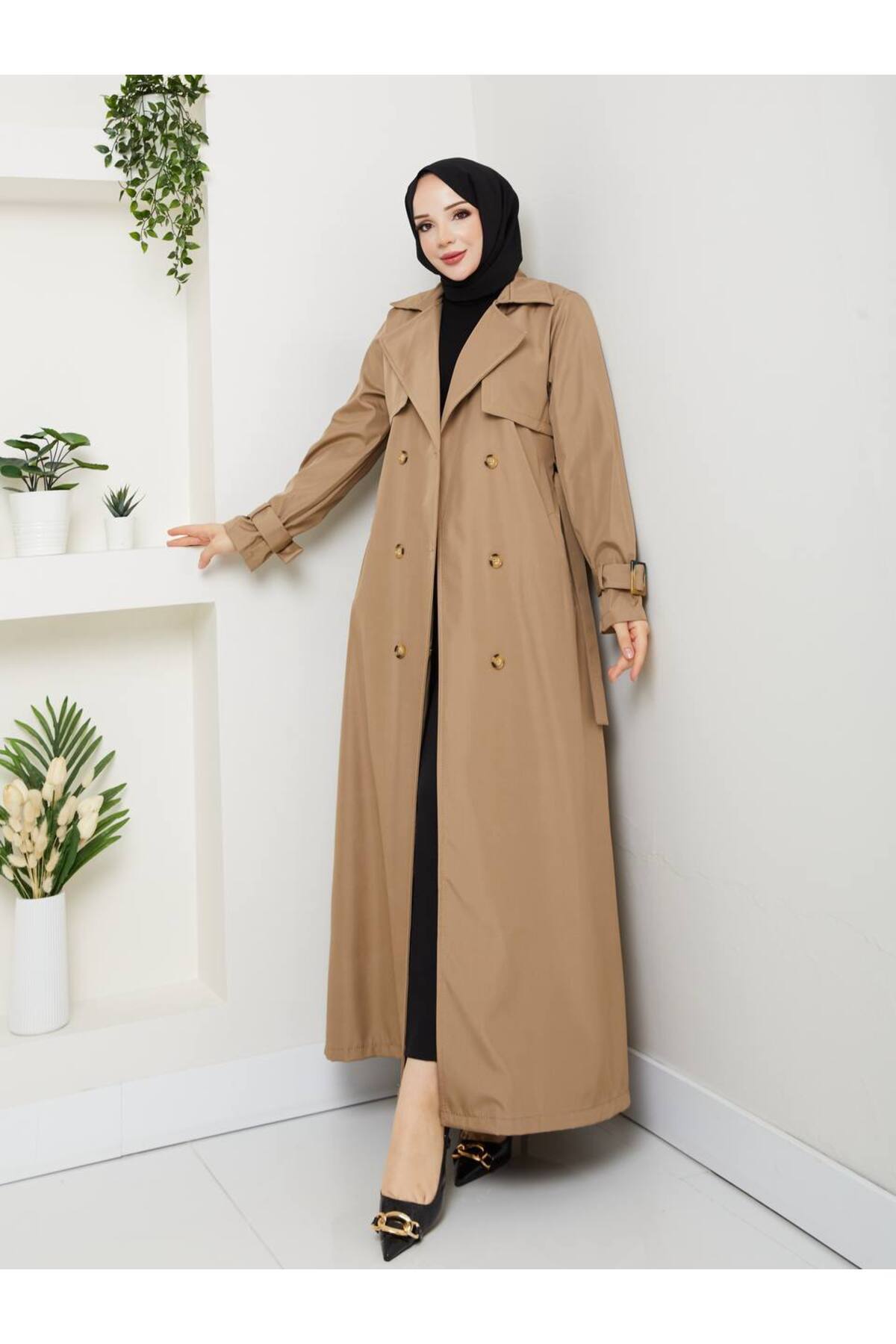 - Kuşak detayı bel bölgesini vurgulayarak feminen bir siluet çizerken aynı zamanda ayarlama imkanı da sağlar.