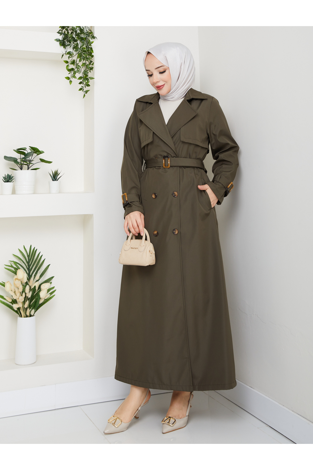 - Kuşak detayı bel bölgesini vurgulayarak feminen bir siluet çizerken aynı zamanda ayarlama imkanı da sağlar.