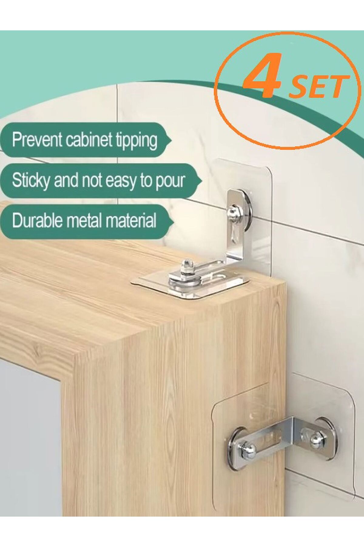 4 ADET Kendinden Yapışkanlı Dolap Raf Mobilya Sabitleme Aparatı