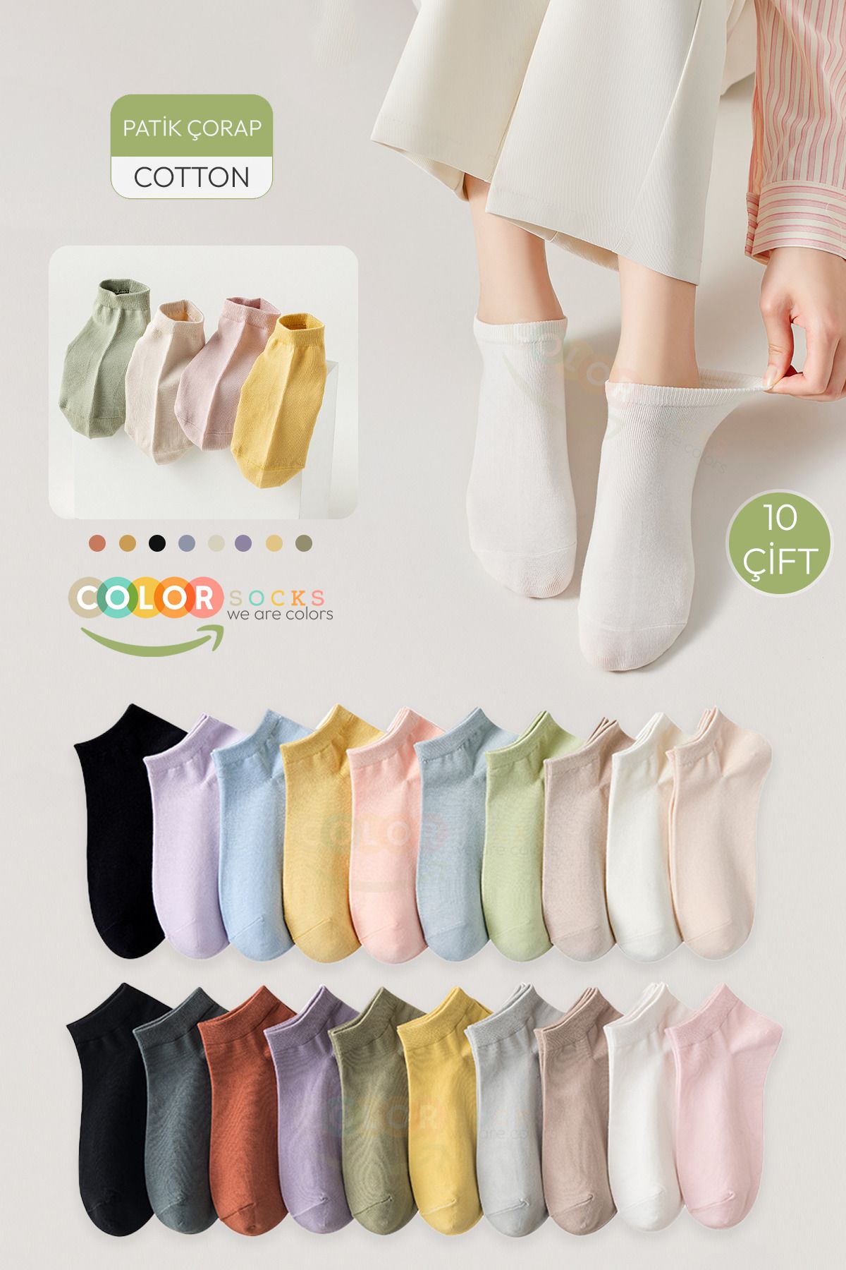 10 Çift Penye Pamuklu Likralı Kadın Patik Çorap