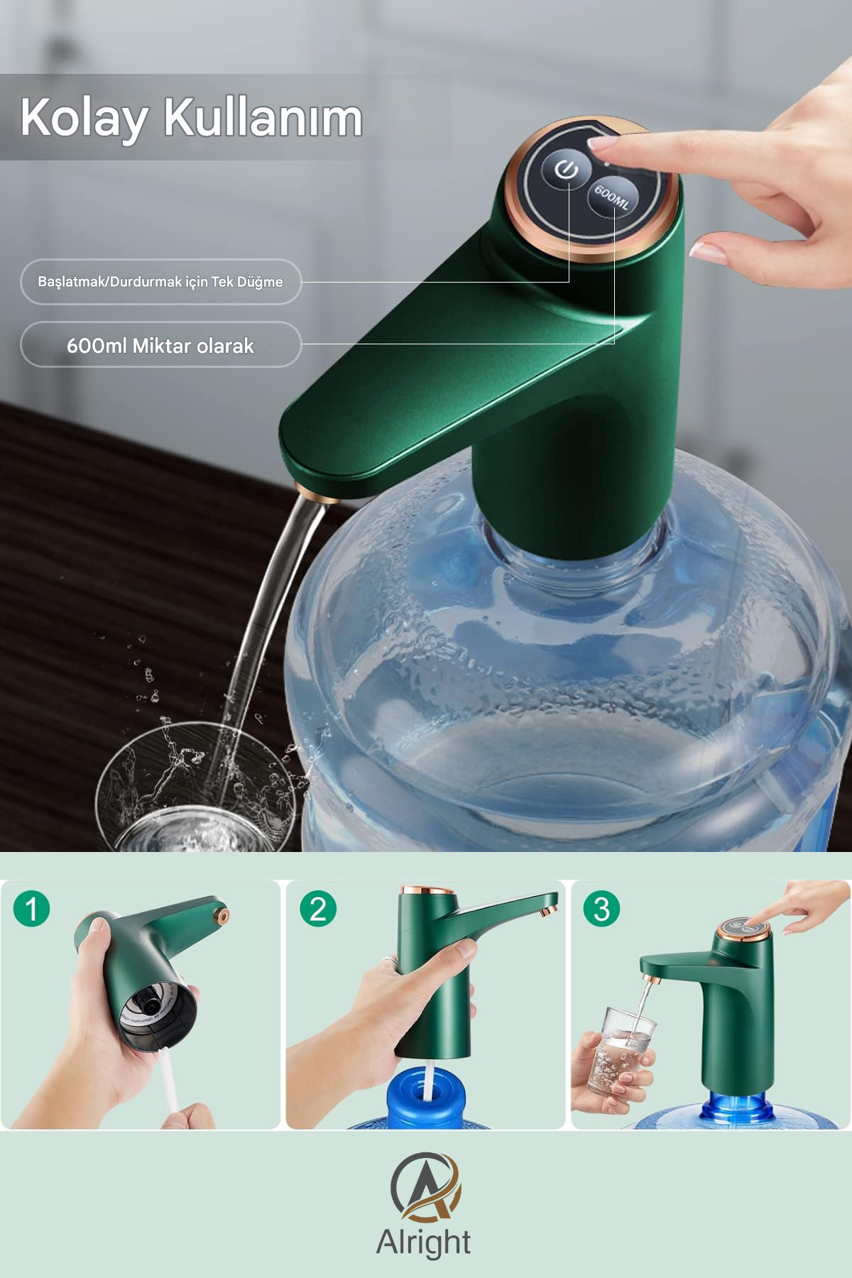 Yeni Tasarımlı Yeşil Ev, Ofis, Dış Mekan 600ML Sınır Tuşlu Damacana Su Pompa Cihazı (Water pump)