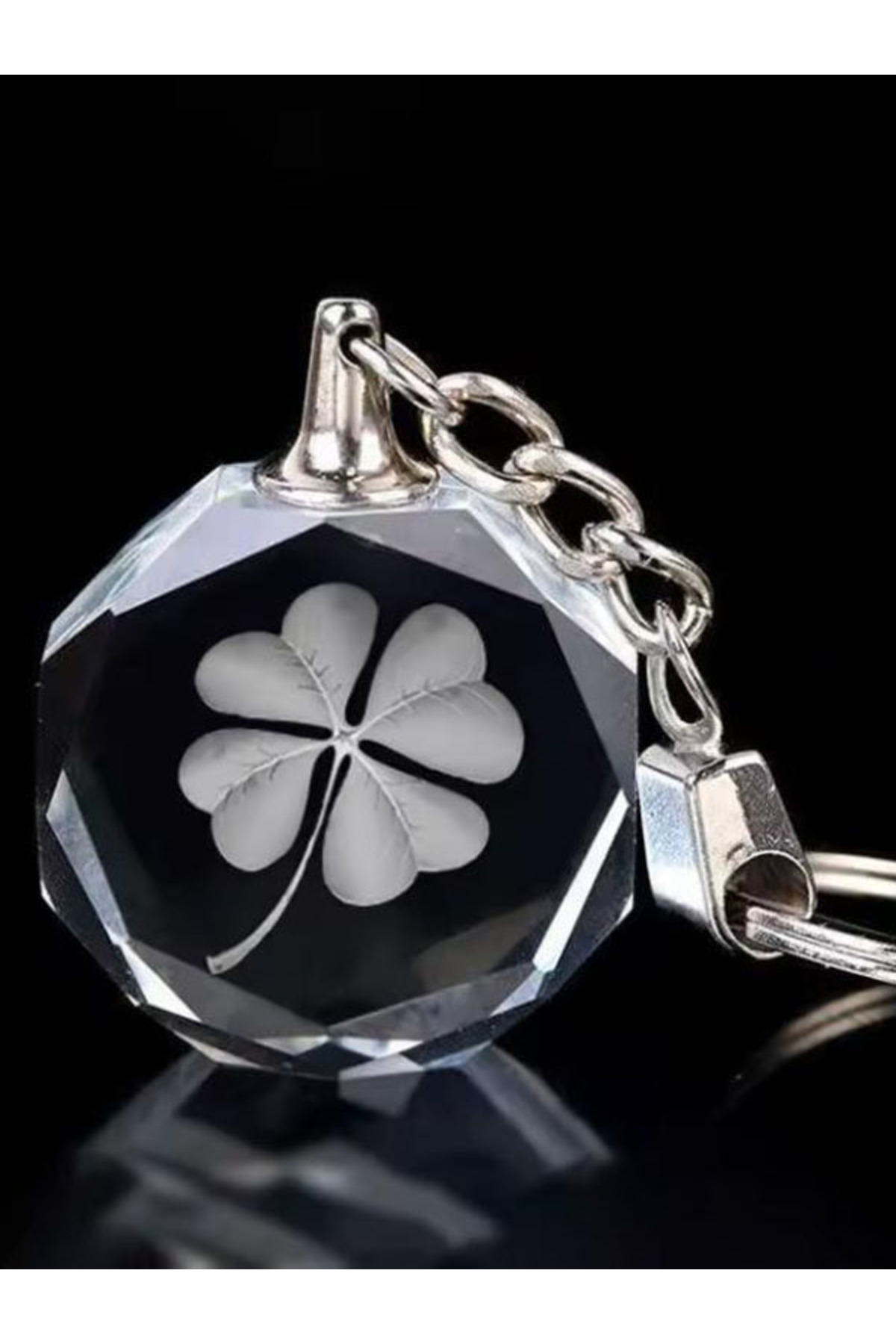 Yonca figürlü kristal cam anahtarlık ışıklı