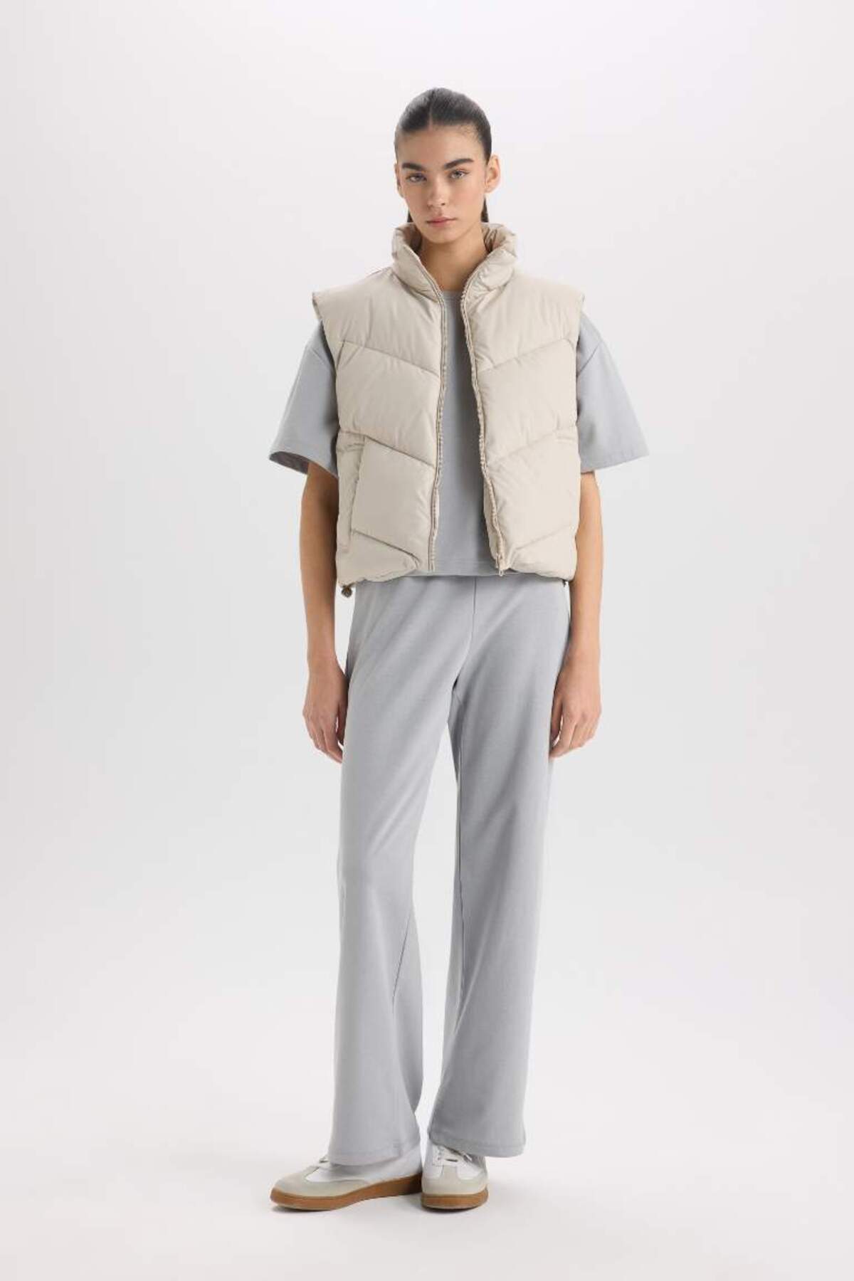 Regular fit kesimi ve dik yaka tasarımıyla bu kapitoneli şişme yelek, fermuar ve cep detaylarıyla fonksiyonellik sunar.