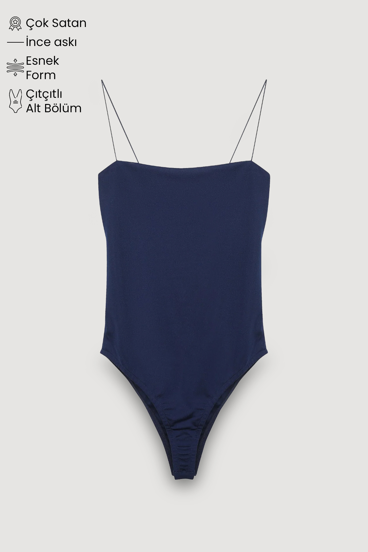 Çıtçıtlı İnce Askılı Bodysuit Siyah
