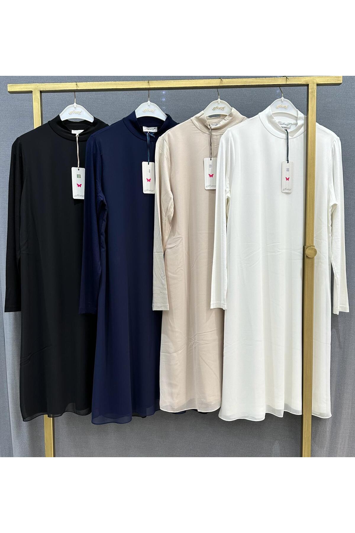Efraze Uzun Kollu Önü Şifon Boğazlı Penye Tunik İçlik 777 1648