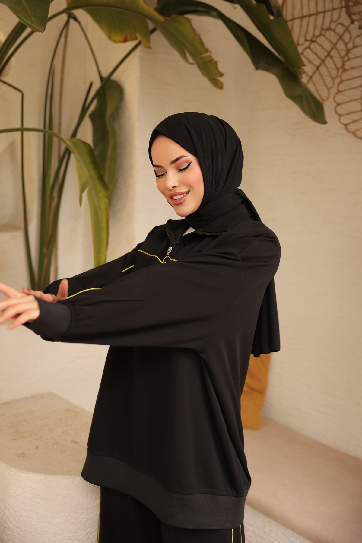 - Siyah renkteki bu eşofman takımı, şıklığı ve rahatlığı bir arada sunar.