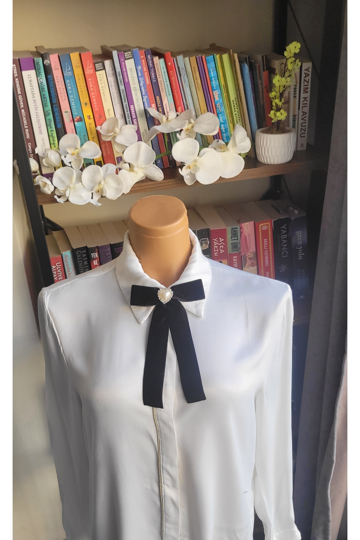• - Saten malzemesinin lüks dokusuyla göz alıcı bir görünüm kazandırırken, papyon yaka broş detayı modern bir stil oluşturmanızda yardımcı olur.