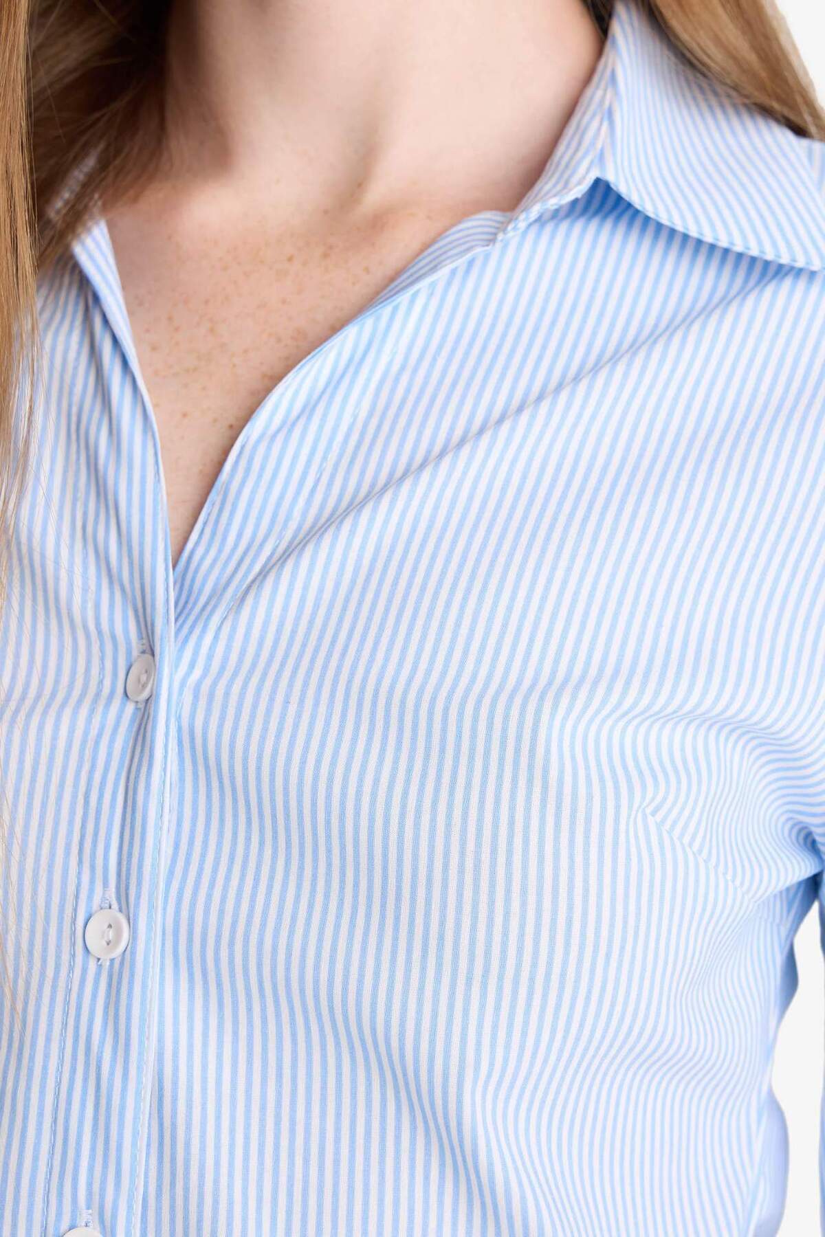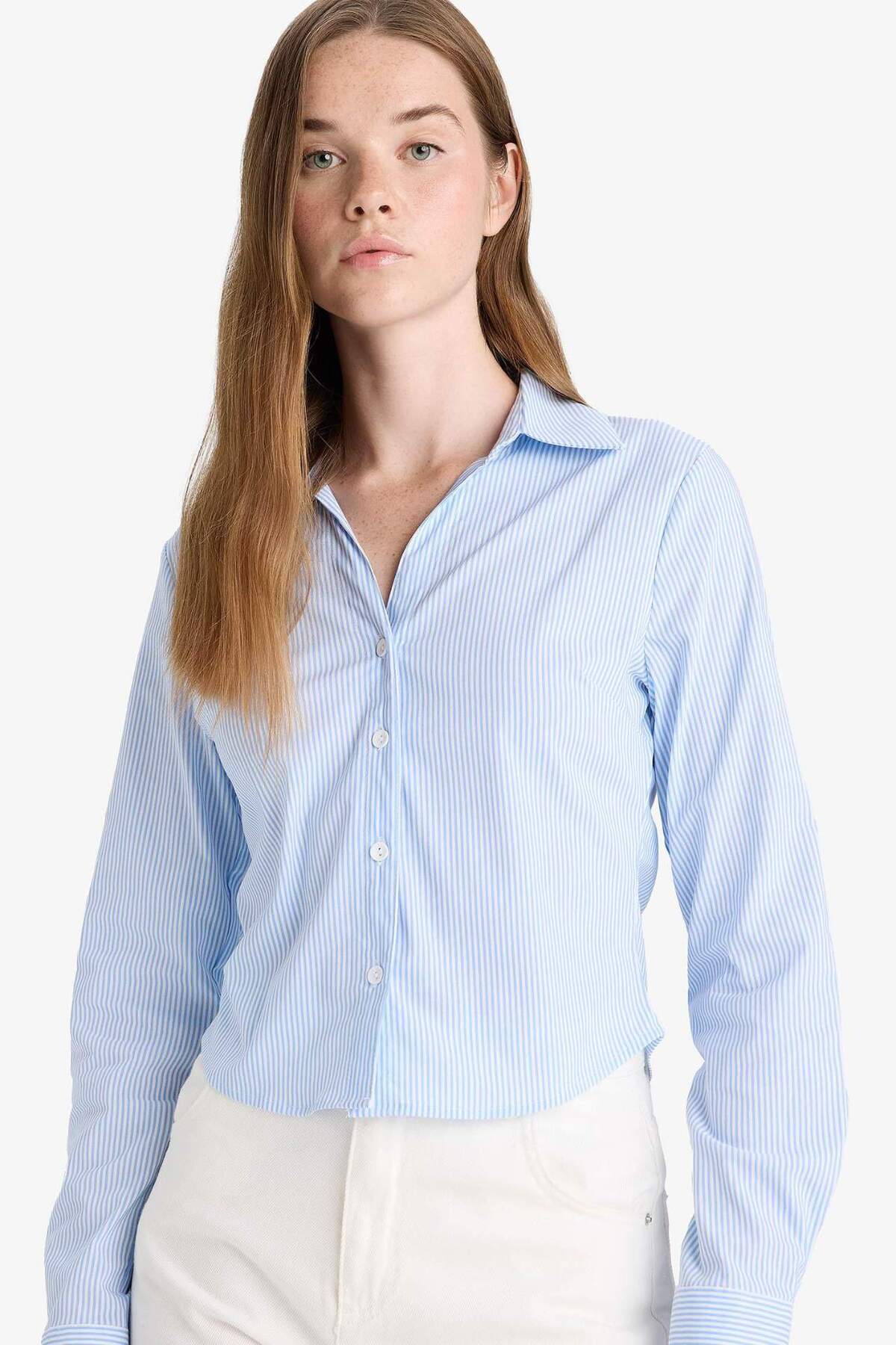 İlkbahar/yaz mevsimlerinde rahatlıkla tercih edebileceğiniz, kadınlar için tasarlanmış gömlek yaka detaylı, bengalin kumaştan üretilmiş uzun kollu gömlek.