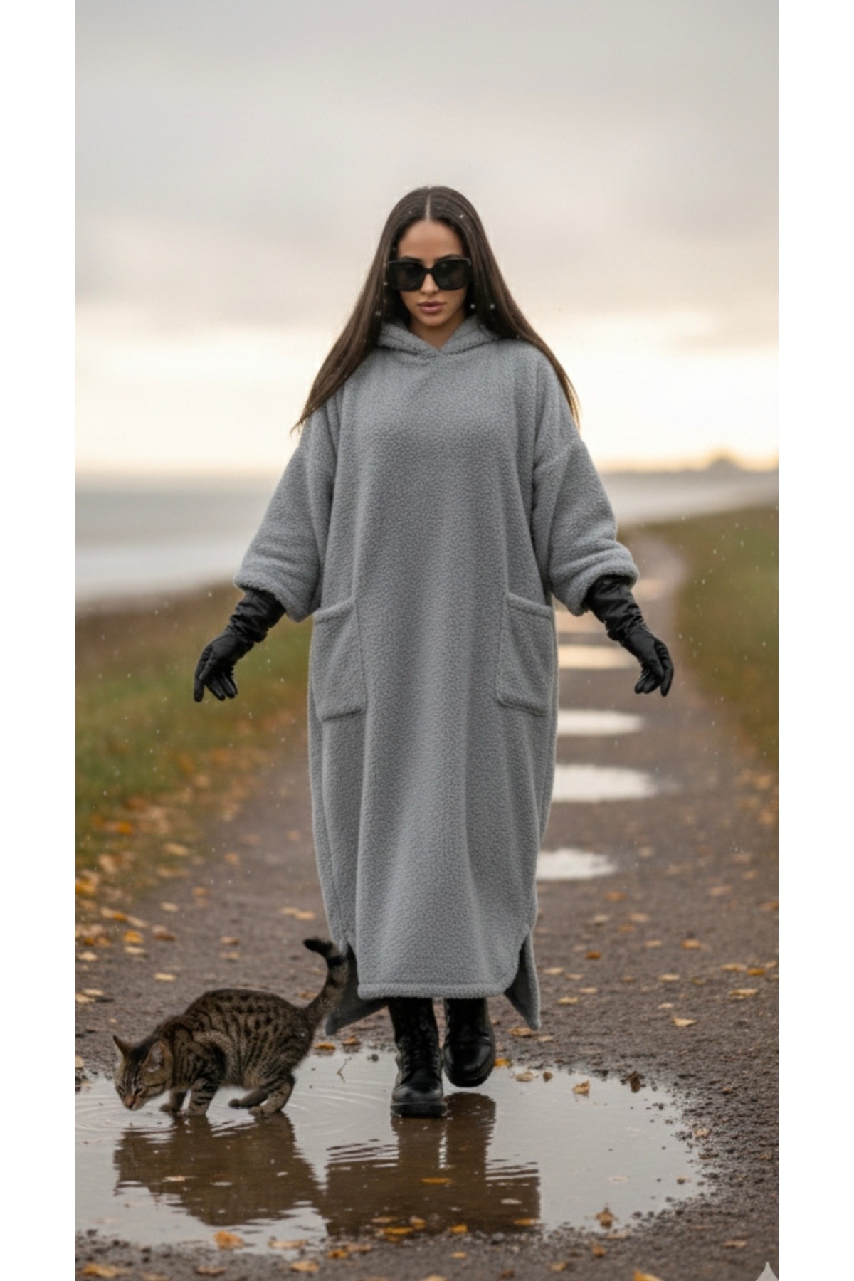Kapişonlu,çift cep,fakir kol ve asimetrik etek özelliğiyle dış giyim ve tesettür giyime göre tasarlanmıştır.