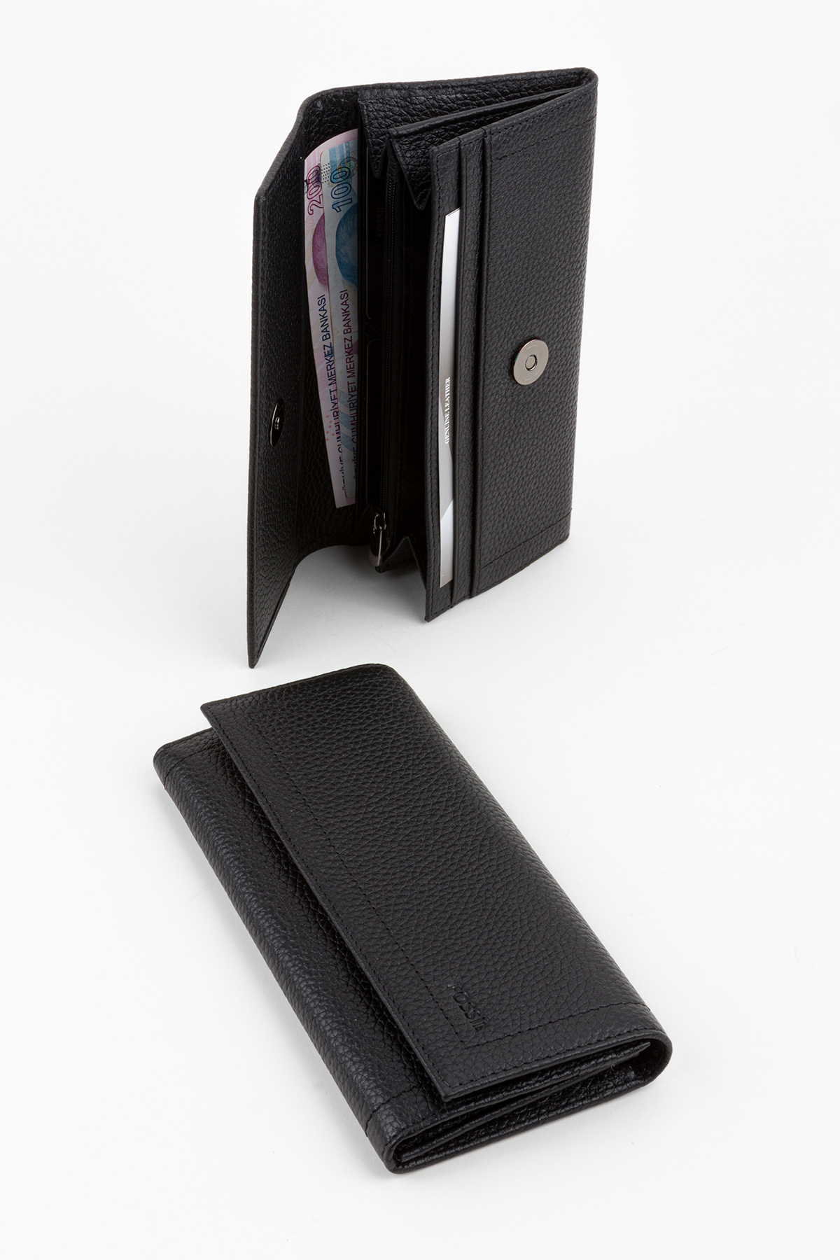 Kutulu Hakiki Deri Siyah Kadın El Portföyü Uzun Cüzdan