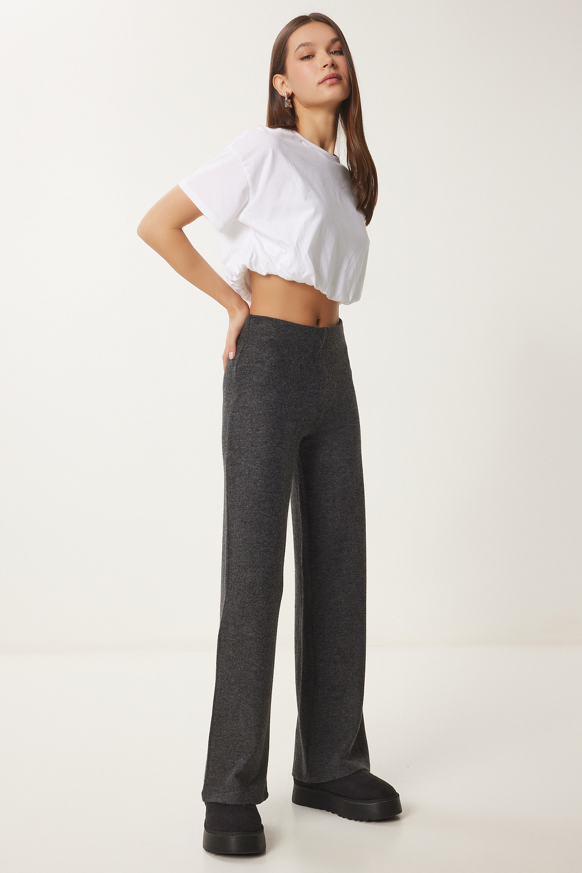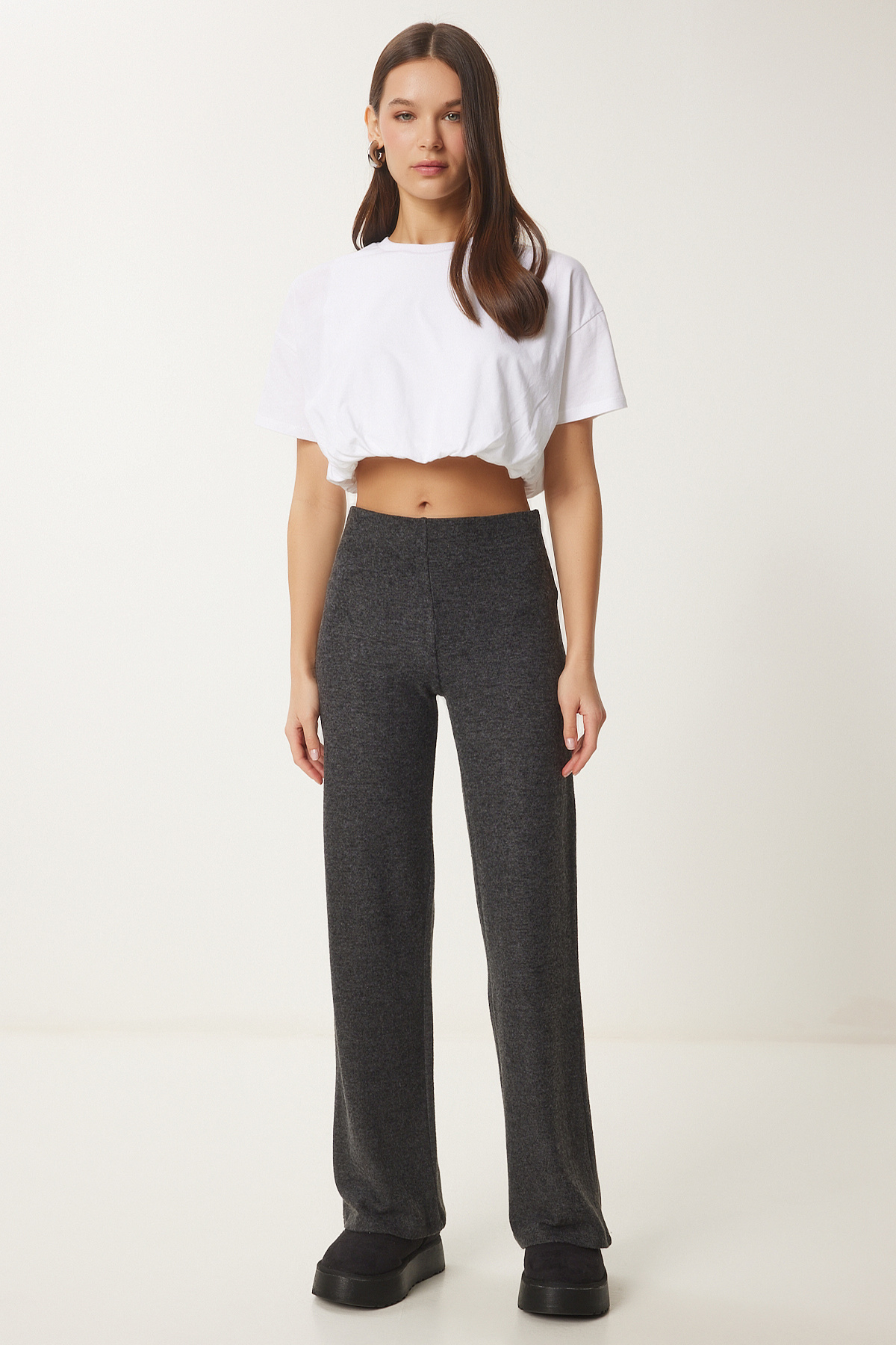 Elastik bel, likralı, geniş paça rahat yumoş pantolon İçerik: %72 Polyester %25 Viskon %3 Elastan Ürün Boyu: 100 cm Bel: 36 cm 30° makinede yıkanabilir.