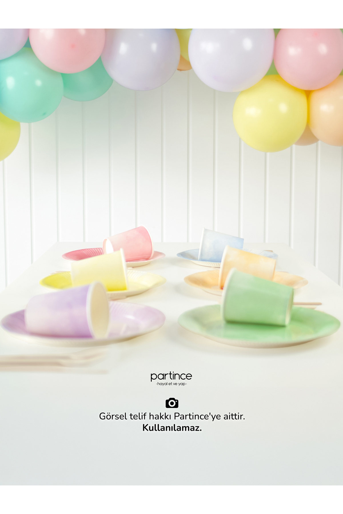6 Kişilik Karışık Makaron Renkli Kullan At Karton Tabak Bardak Çatal Kaşık Bıçak Doğum Günü Seti