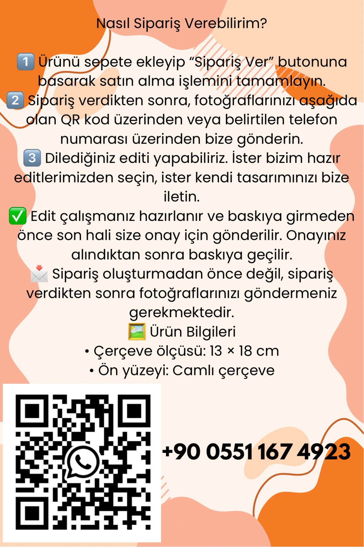 Özenle hazırlanan kolaj edit tasarımımız, tamamen size özel hazırlanır ve yüksek kaliteli çerçeve ile gönderilir.