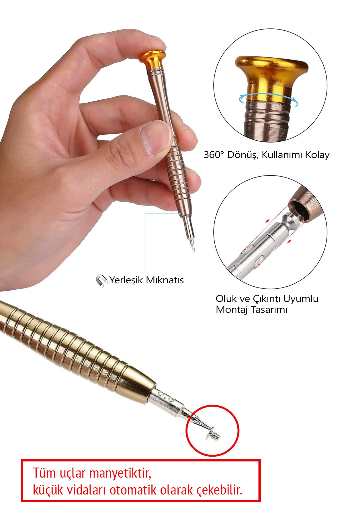 - Manyetik Uçlar: Vida ve küçük parçaların düşmesini engelleyen manyetik uçlar ile daha güvenli ve pratik kullanım.