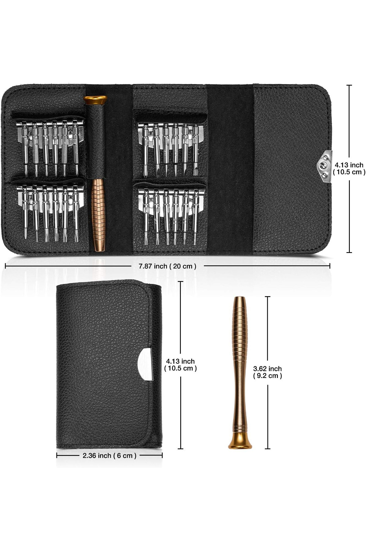 - 25 Parça Çeşitliliği: Set, düz, yıldız, Torx, Allen (imbus) ve hassas tornavida uçları dahil olmak üzere farklı başlıklardan oluşur.