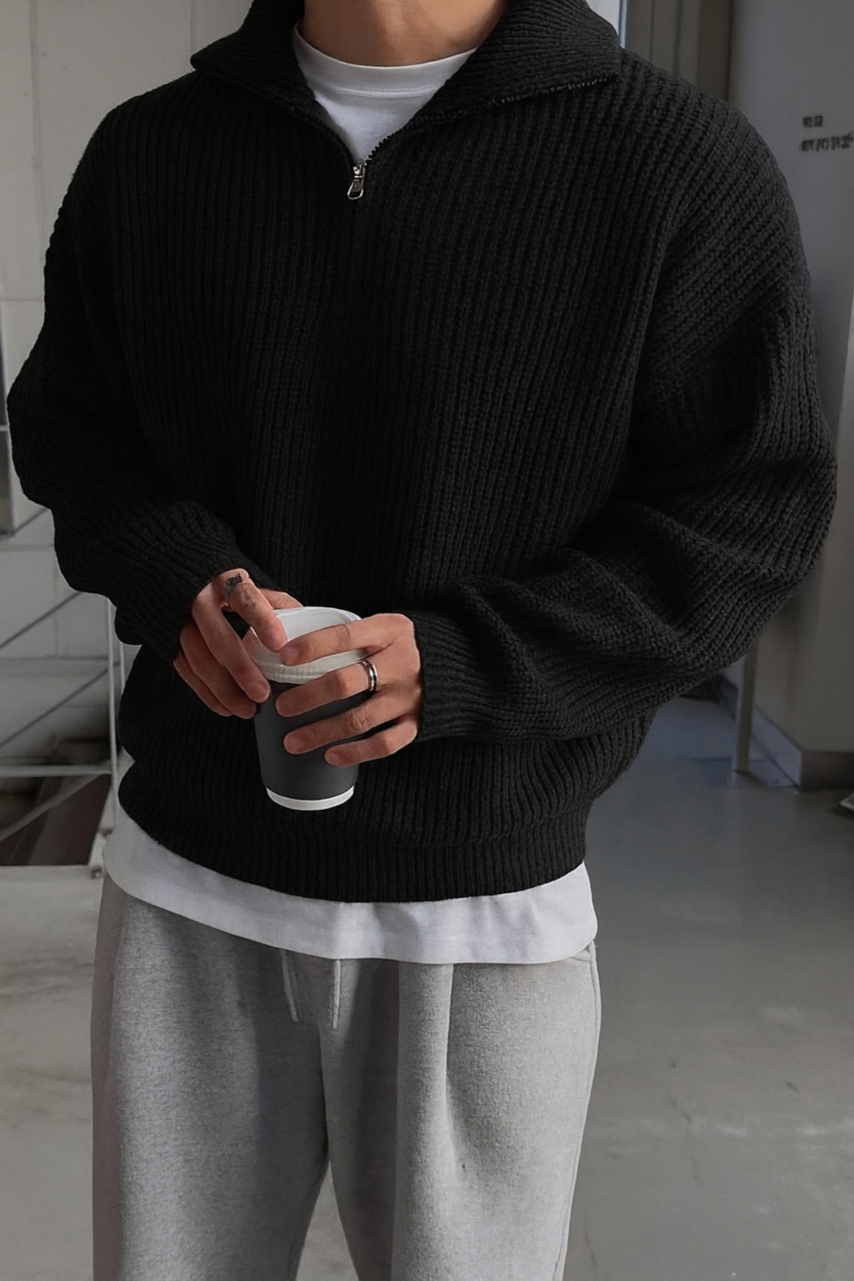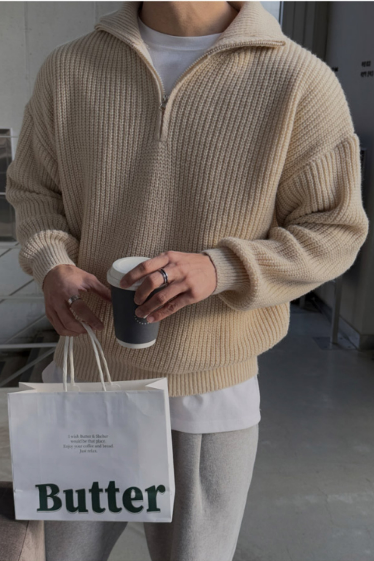 - Her yaş grubuna hitap eden, rahat kesimiyle günlük kullanım için ideal olan füme erkek oversize fermuarlı balıkçı triko kazak.