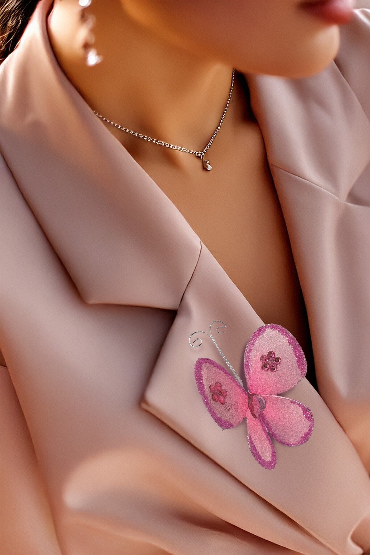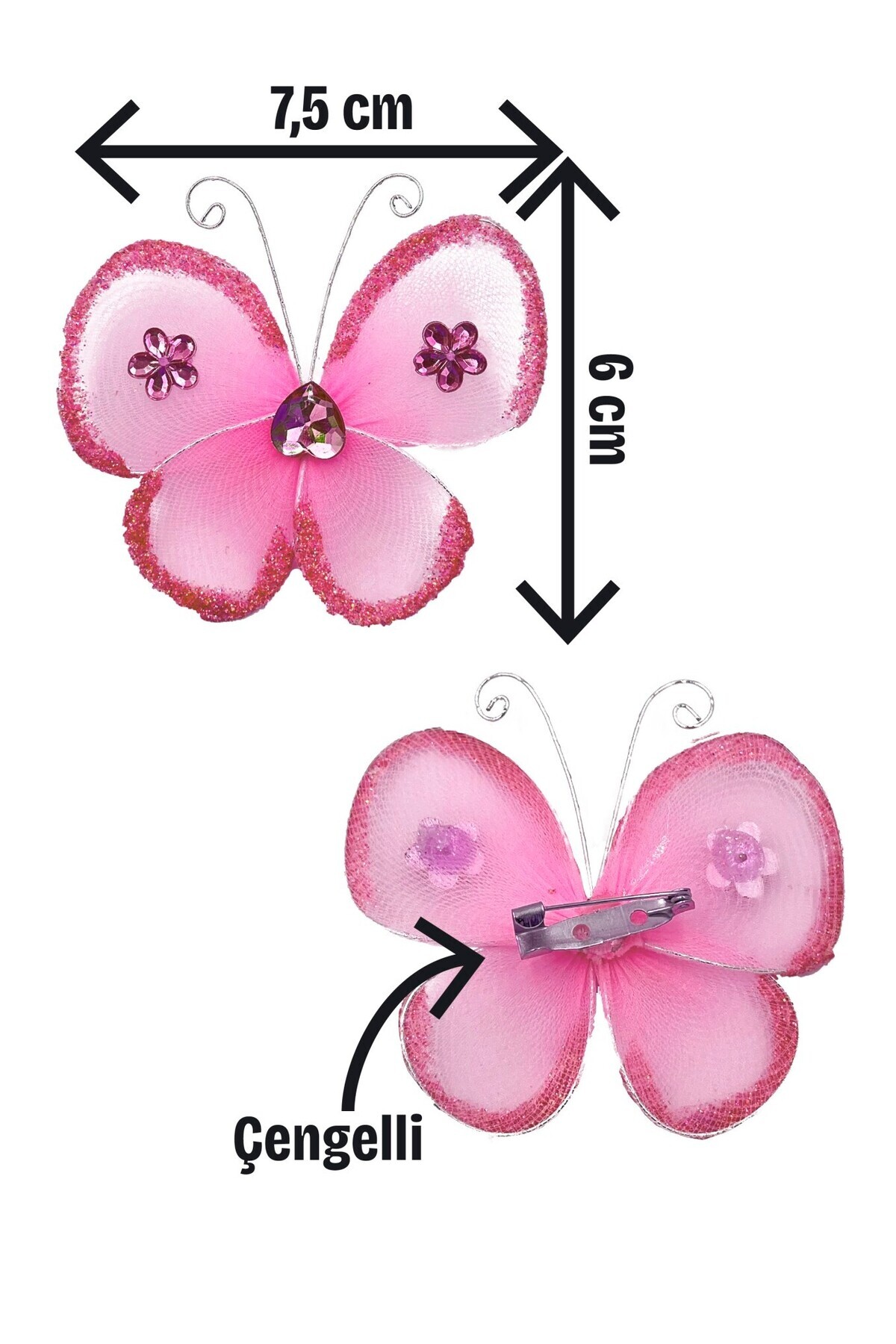 - El yapımı taşlı kelebek desenleriyle süslenmiş, her bir parça ayrı bir zarafet sunar.