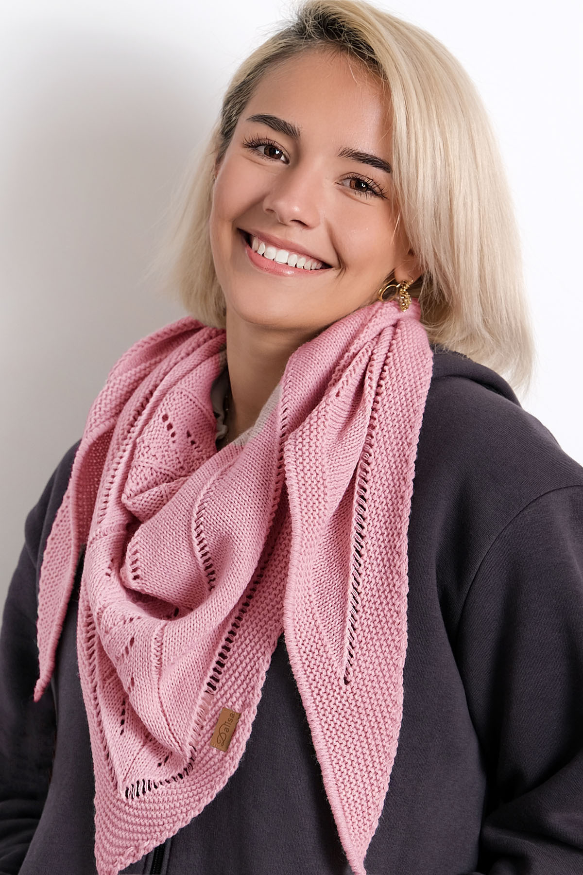 Maria Youngteen serisinin şık bir parçası olan bu triko üçgen şal fular, genç kız çocukları için ideal bir aksesuar sunar.