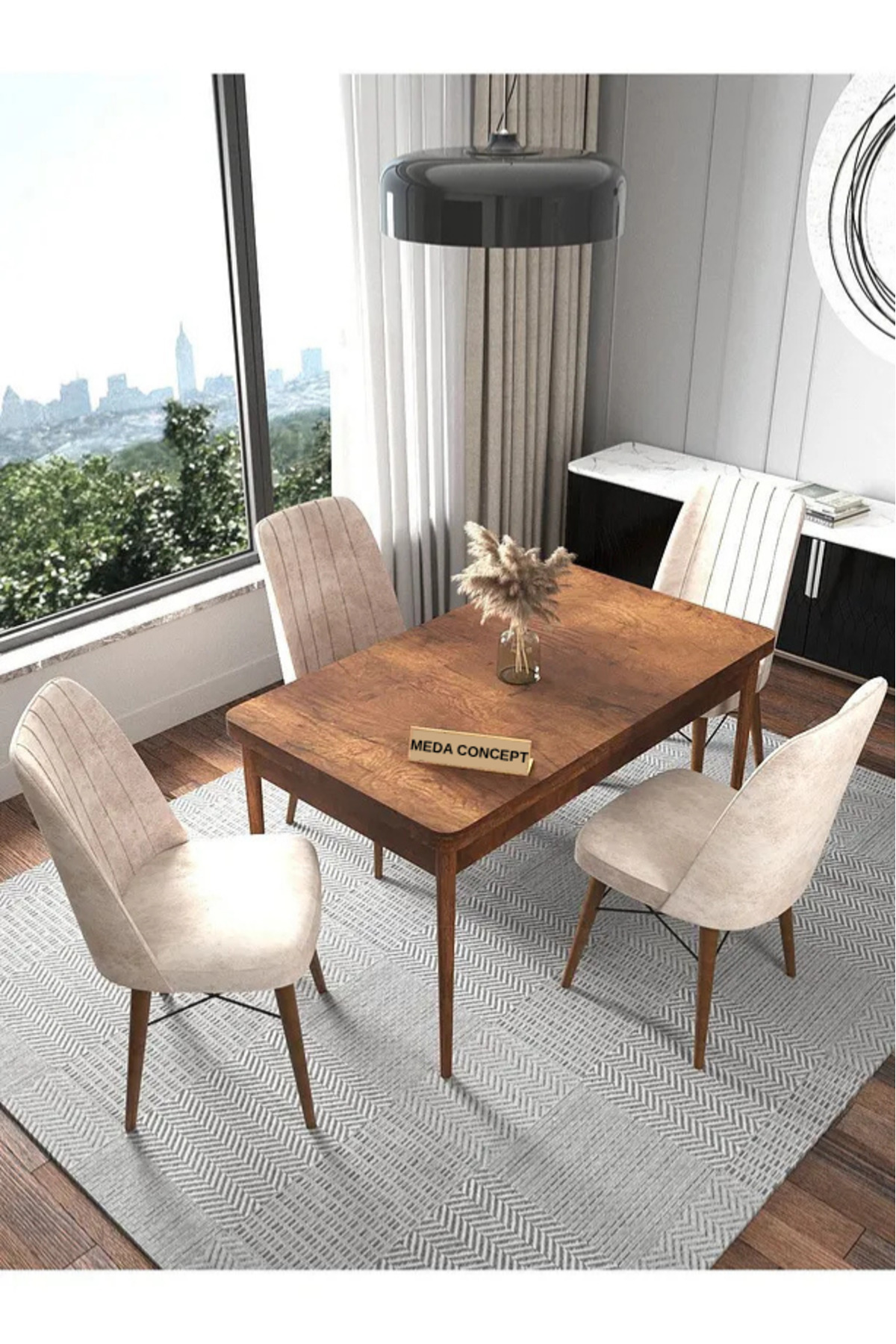 4 Kişilik Sabit Masa Sandalye Takımı 70x110 Cm Mutfak Masası Takımı Yemek Masası Masa Takımı