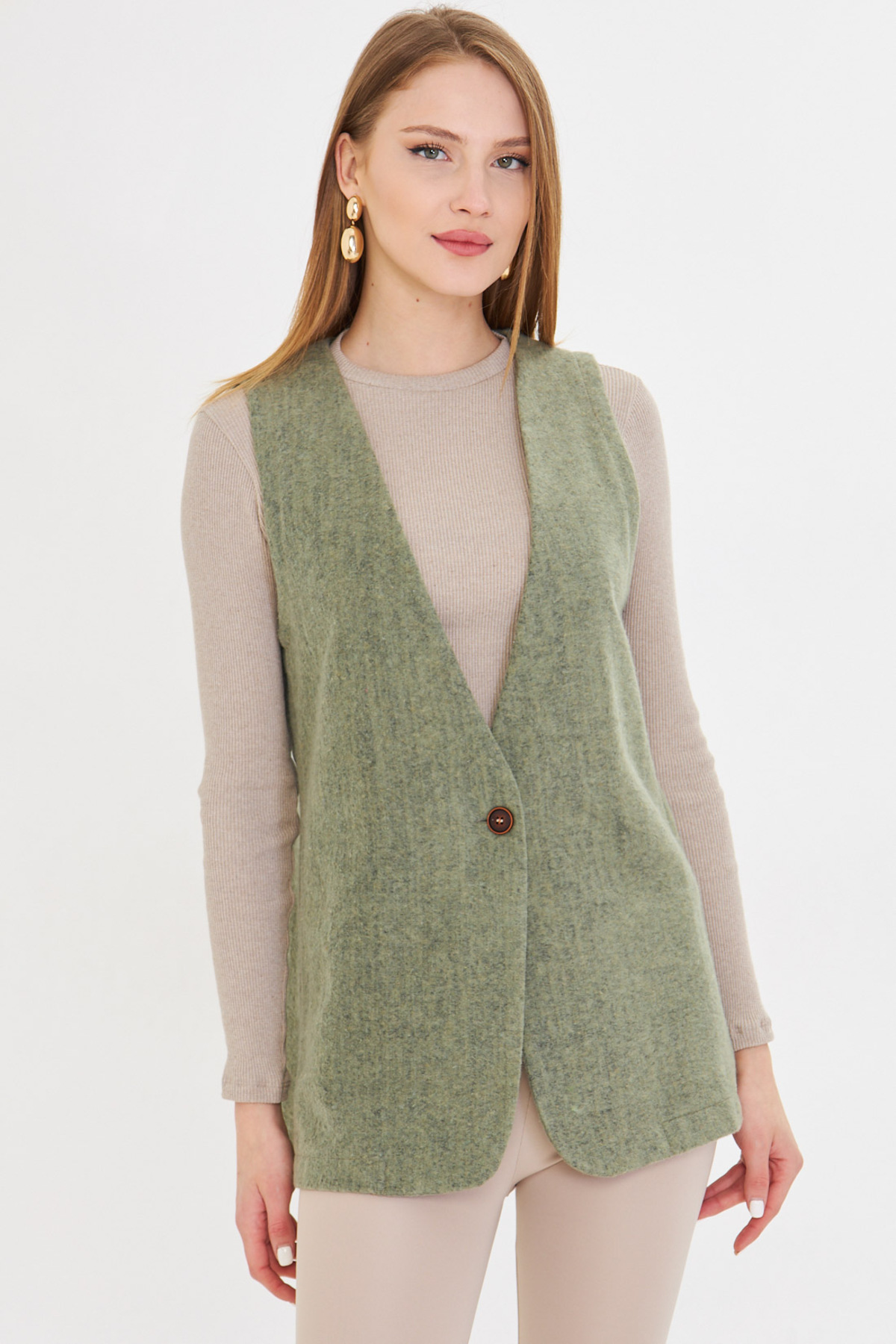 Kadın Mor V Yaka Tek Düğmeli Oversize Desenli Yelek ARM-25K001110
