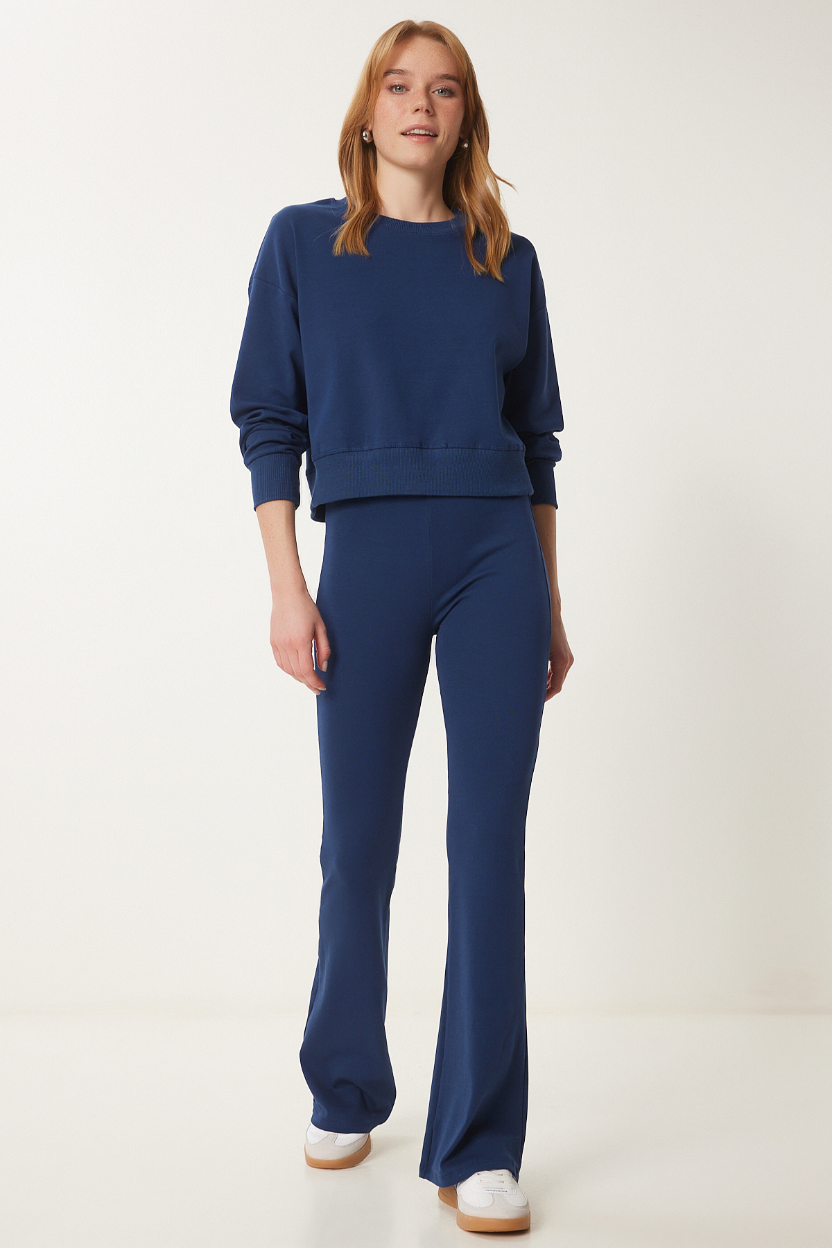 Bisiklet yaka sweatshirt ve yüksek, elastik bel ispanyol paça tayttan oluşan eşofman takımı