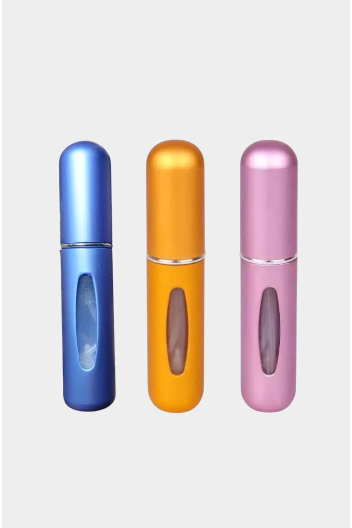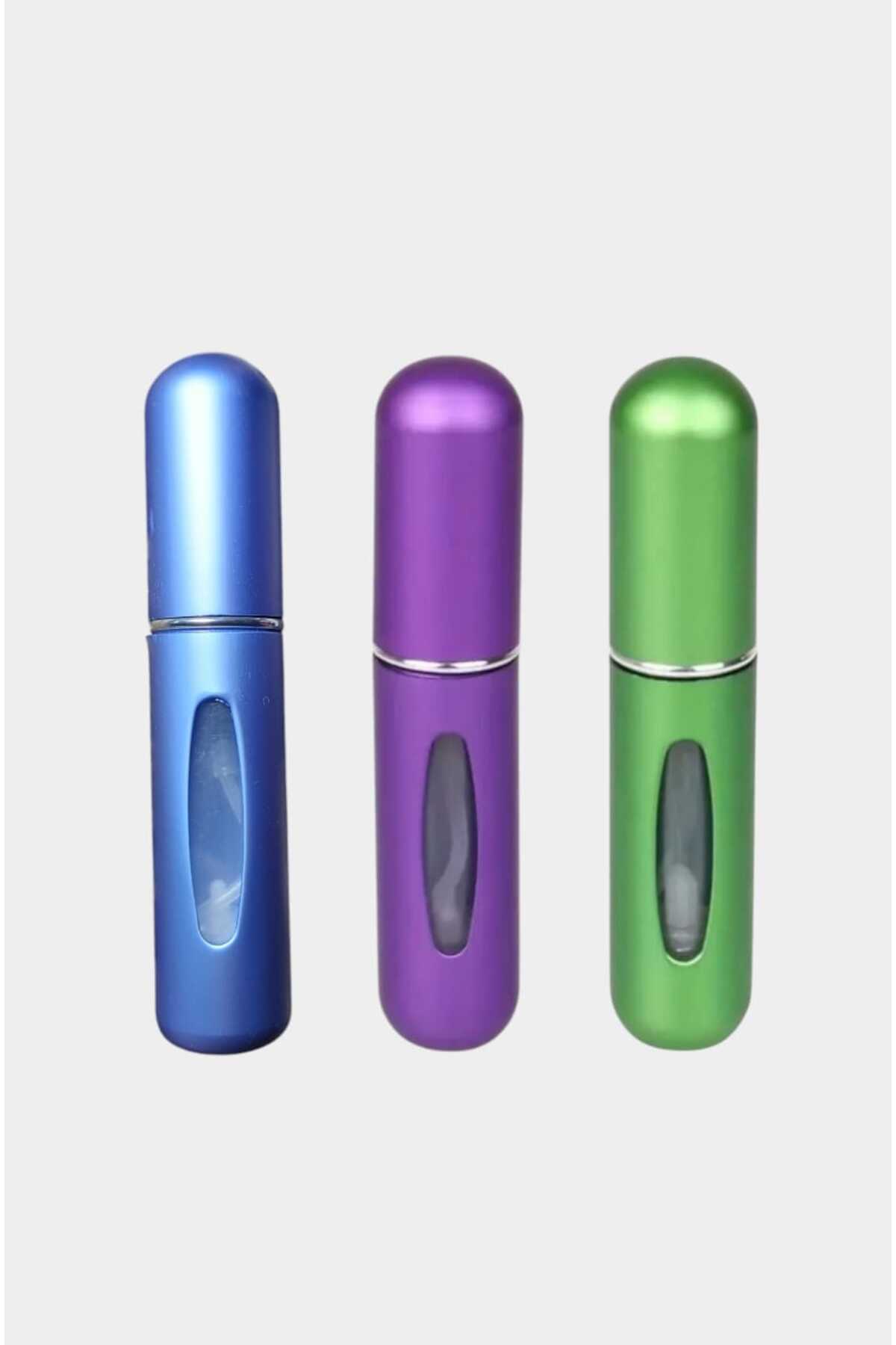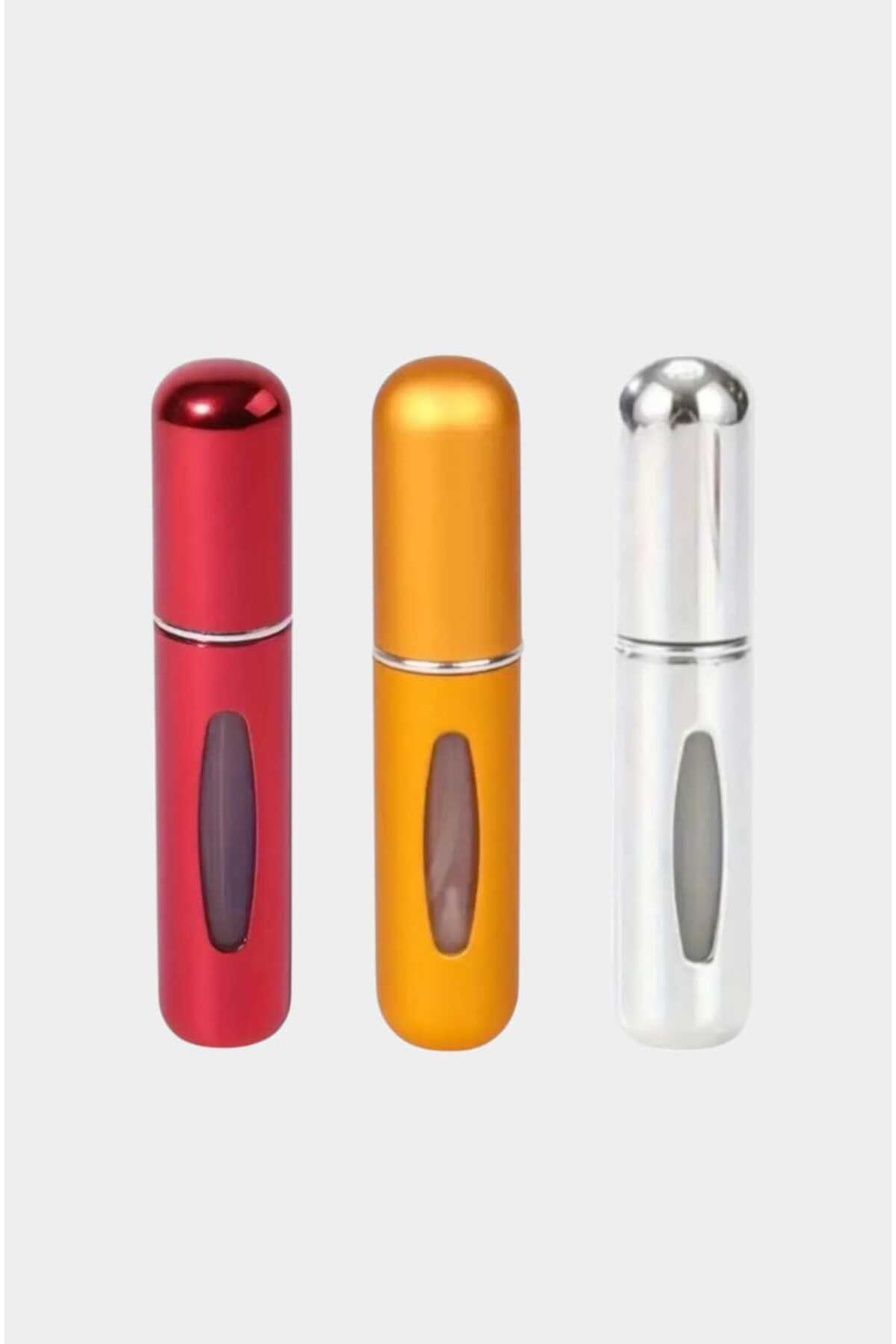 Küçük ve Zarif Uzunluk : 8cm Çap: 1.7cm Paket İçeriği 3 adet Taşınabilir ve Doldurulabilir Mini Cep Parfüm Kolonya Dezenfektan Şişesi