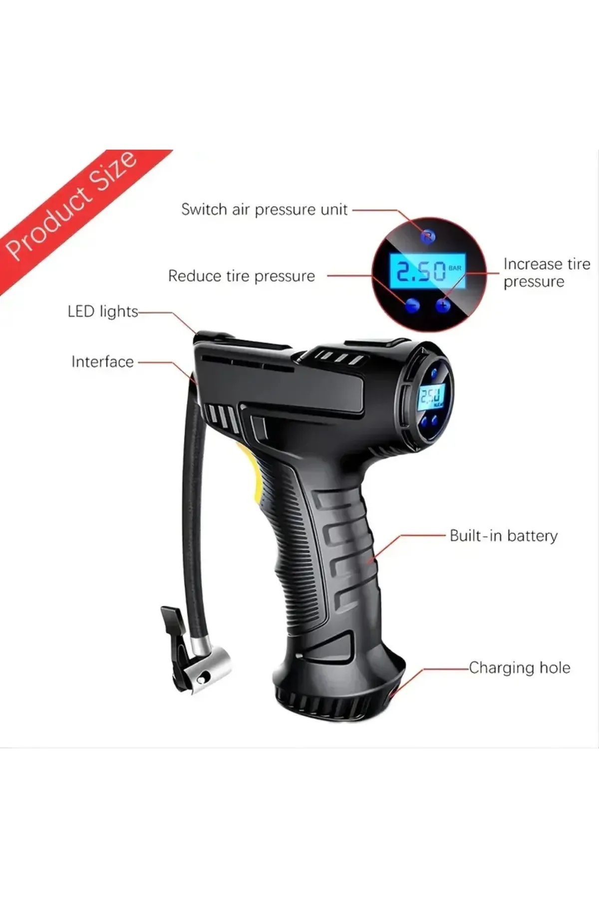 3600 Mah Şarjlı Tabanca Auhma Kompresör Araba Bisiklet Top Lastik Şişirme Pompası