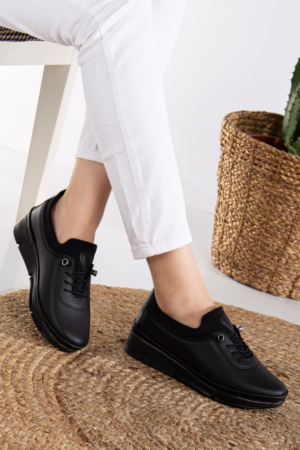 Kadın Ciltli Lastikli Detaylı Anne Ayakkabısı Günlük Ayakkabı Babet