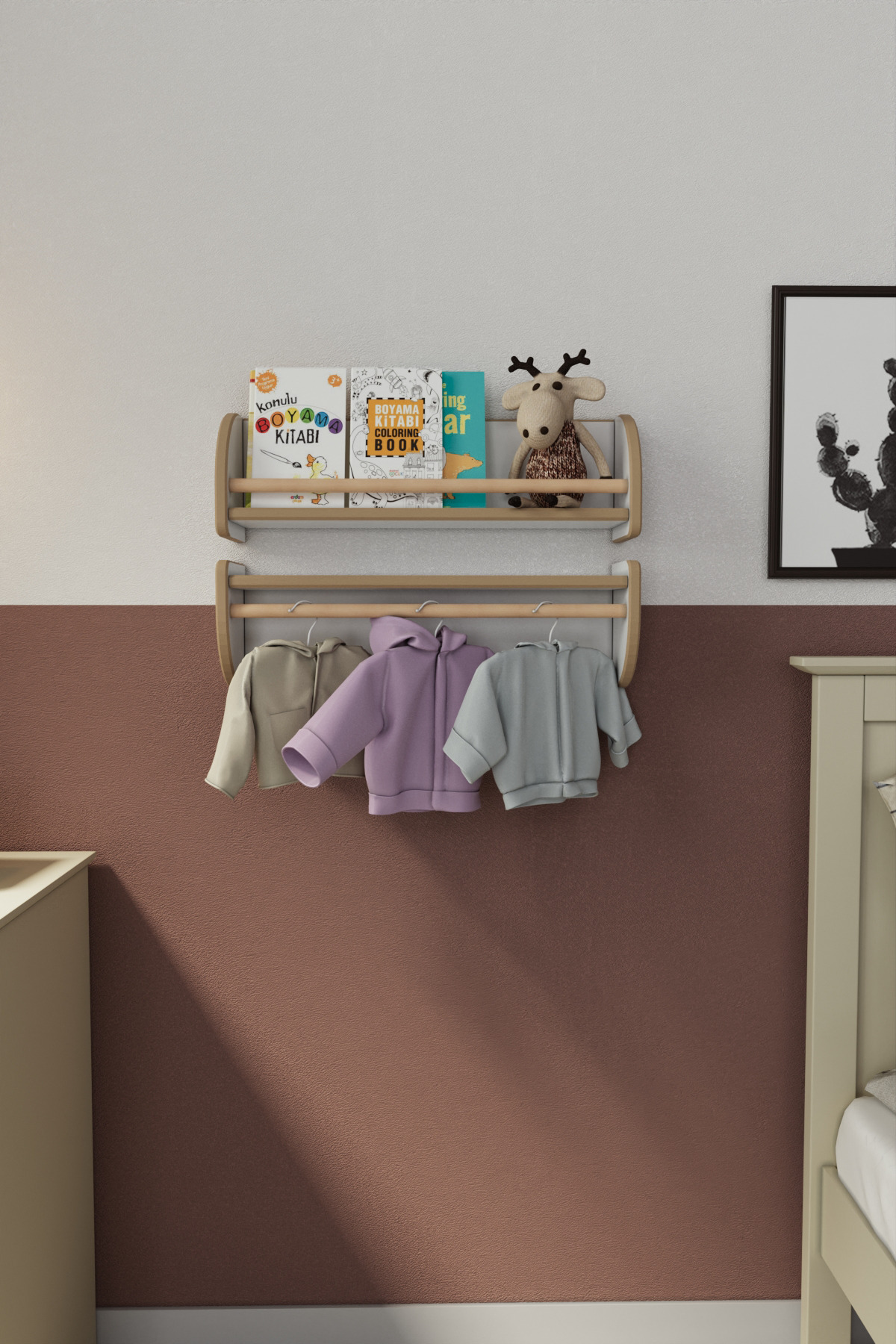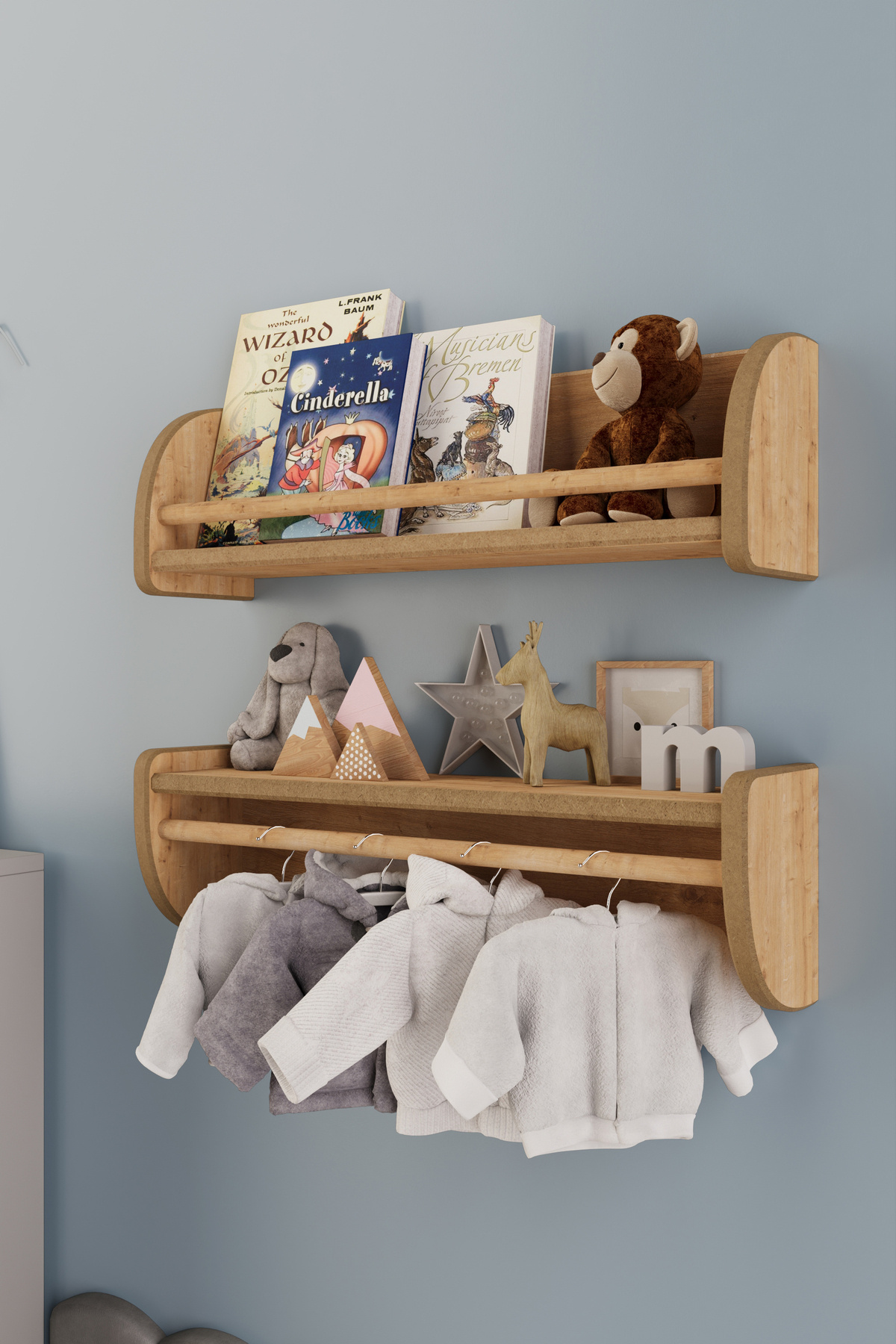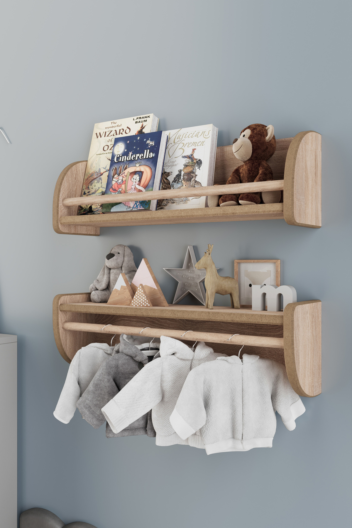 Montessori Ikili Çok Amaçlı Mdflam Dekoratif Duvar Rafı - Safir Meşe