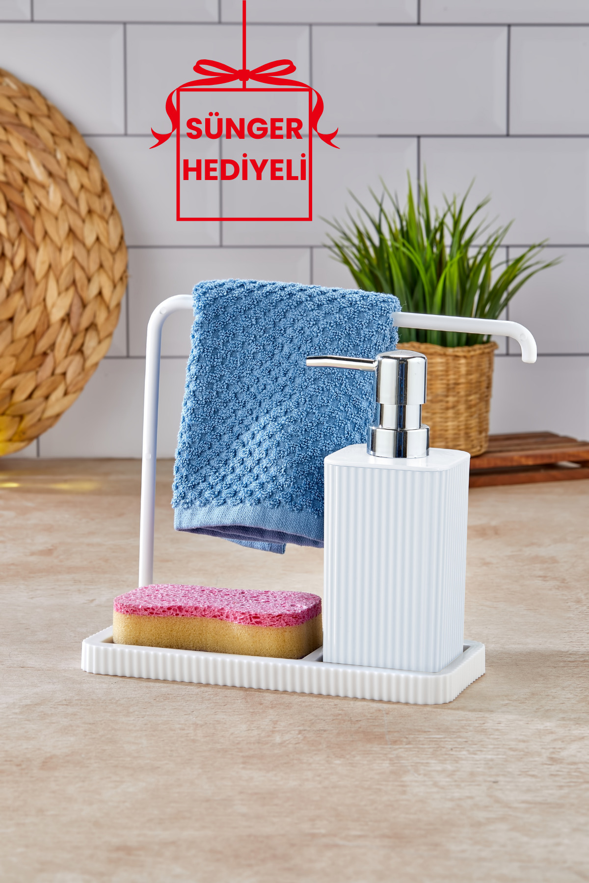 ESTE- Askılı Mutfak Sıvı Sabunluk - Mutfak Bezi Askılı, Sünger Hazneli - Mutfak Lavabo Seti