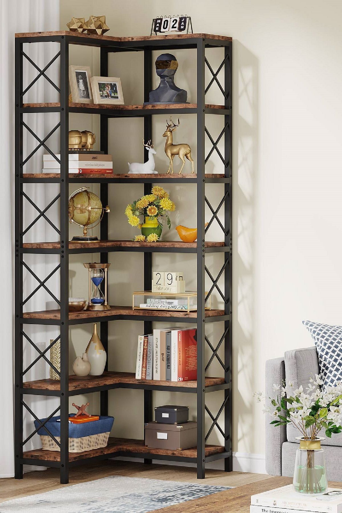 Modern ve Şık Tasarımlı 7 Katlı Köşe Kitaplık ve Depolama Rafı