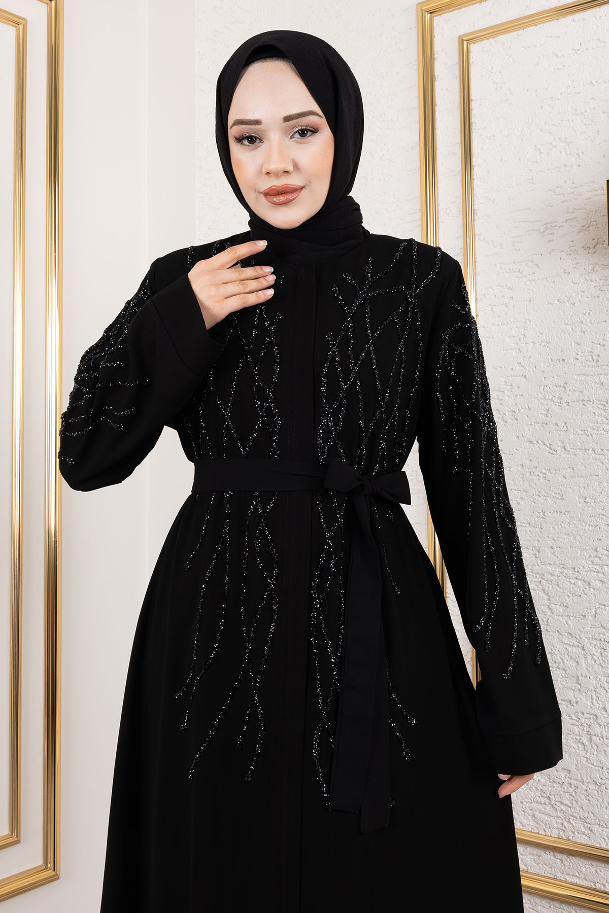 Ürün Özelliği : Yeni sezon Gizli Fermuarlı Taş Detaylı Abaya modelidir.