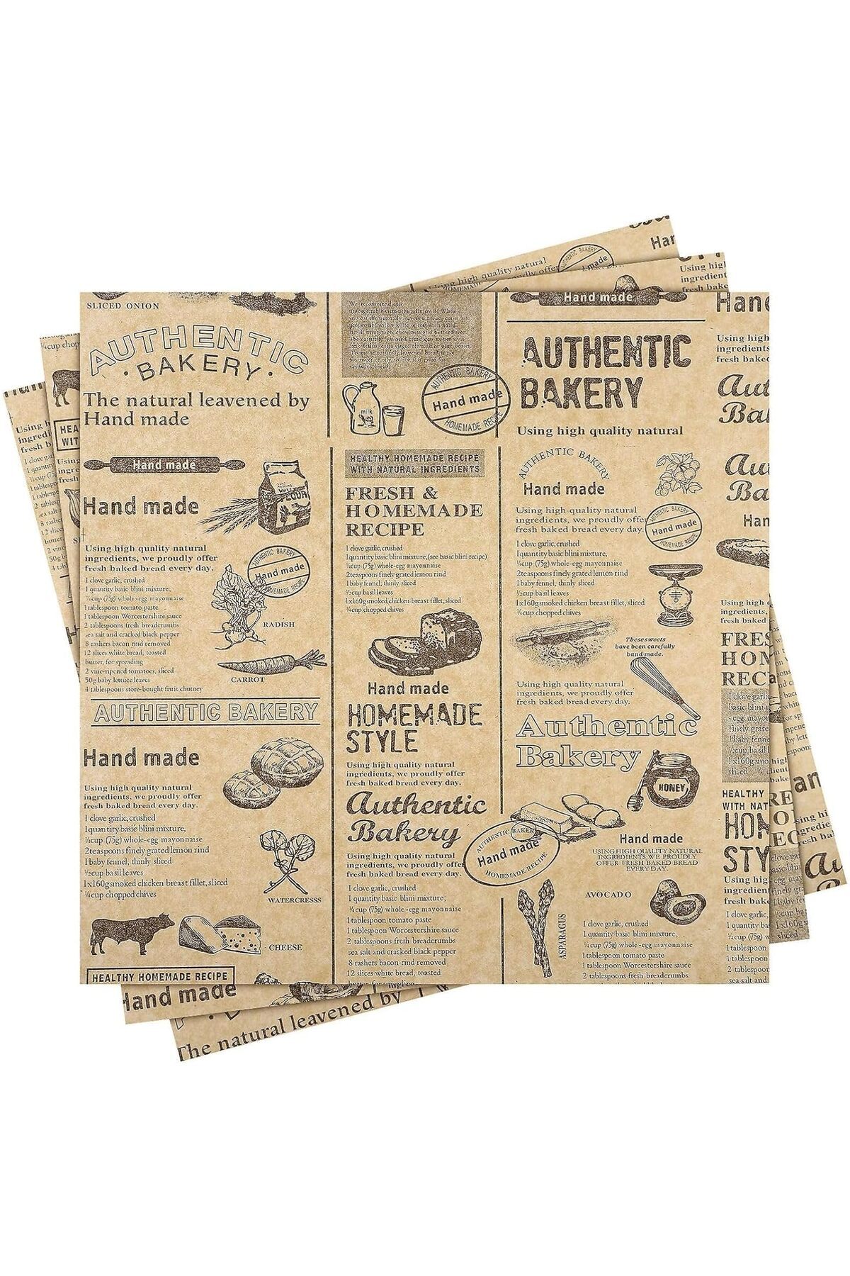 Vintage Gazete Desenli Yağlı Kağıt – 50 Adet Kendinden Desenli Mutfak Sunum Kağıdı