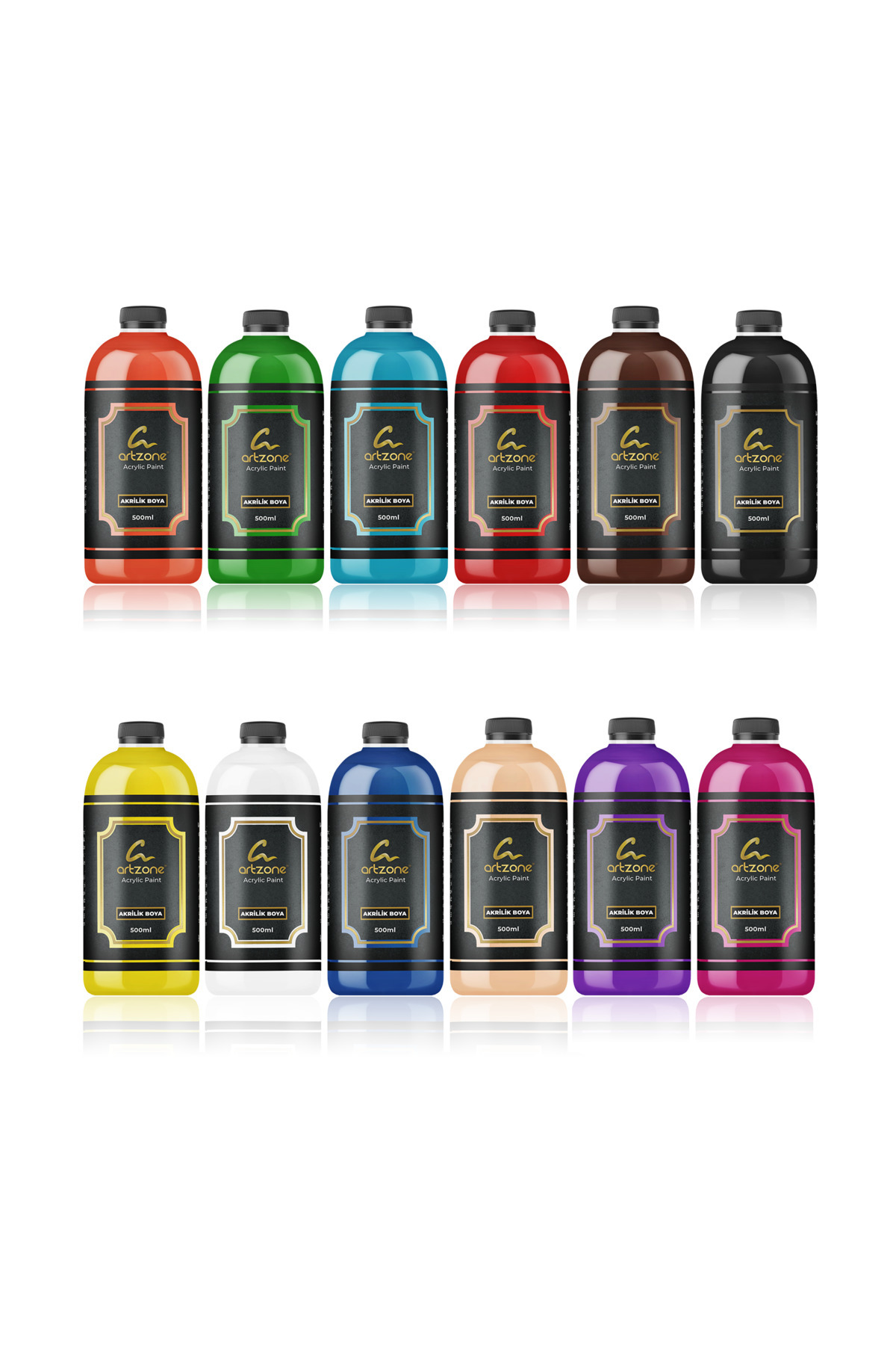 Akrilik Boya Seti - Tüm Renkler 12 Renk x 500ml + Fırça Hediyeli