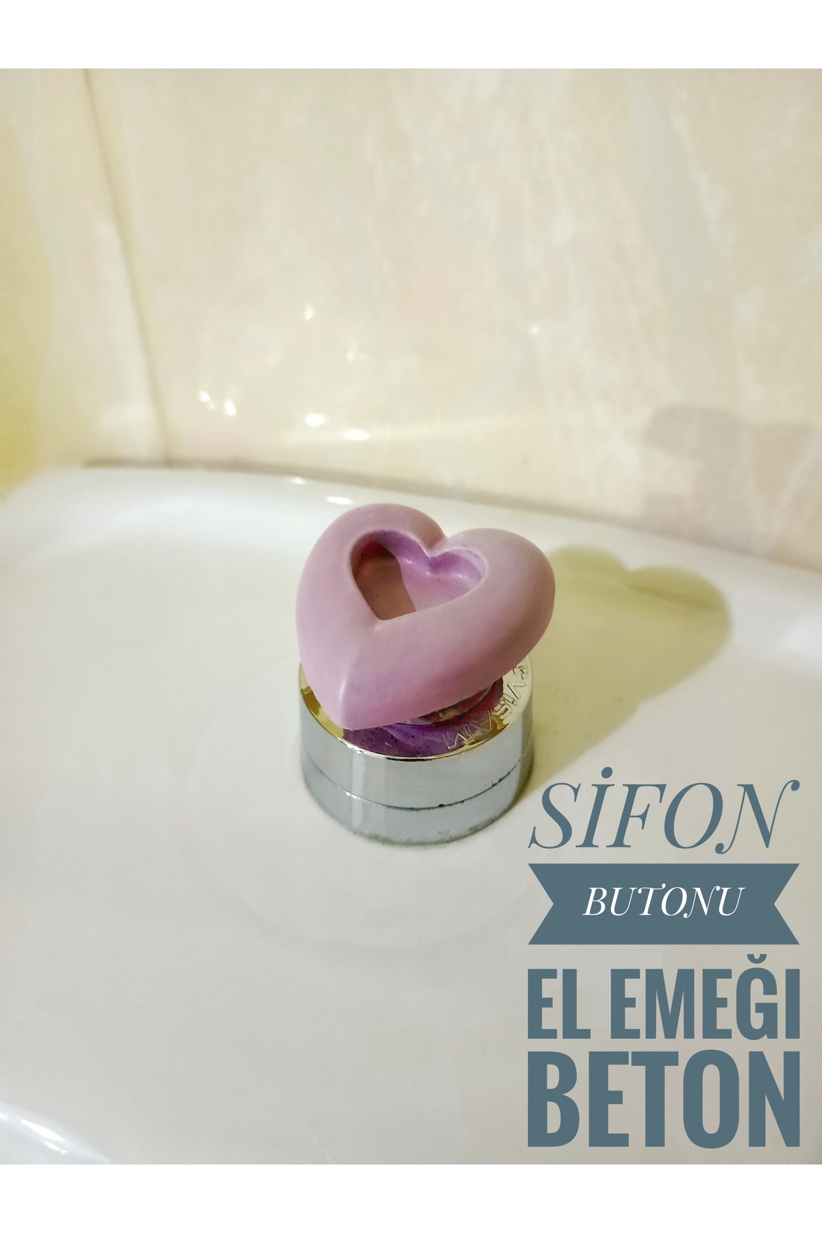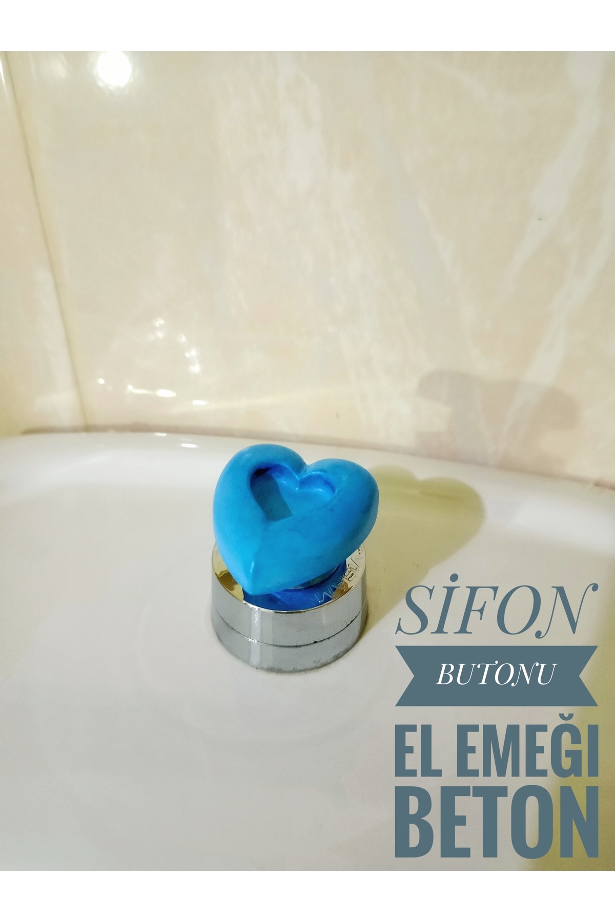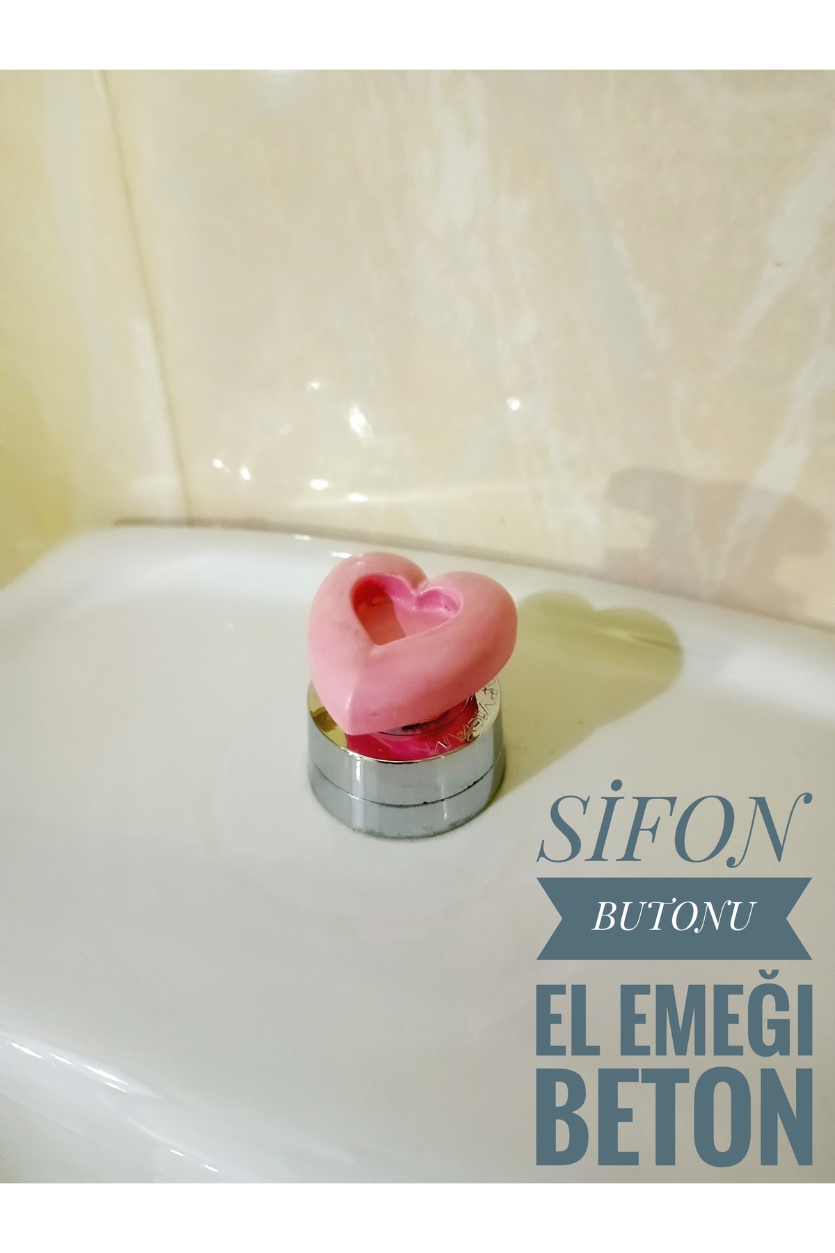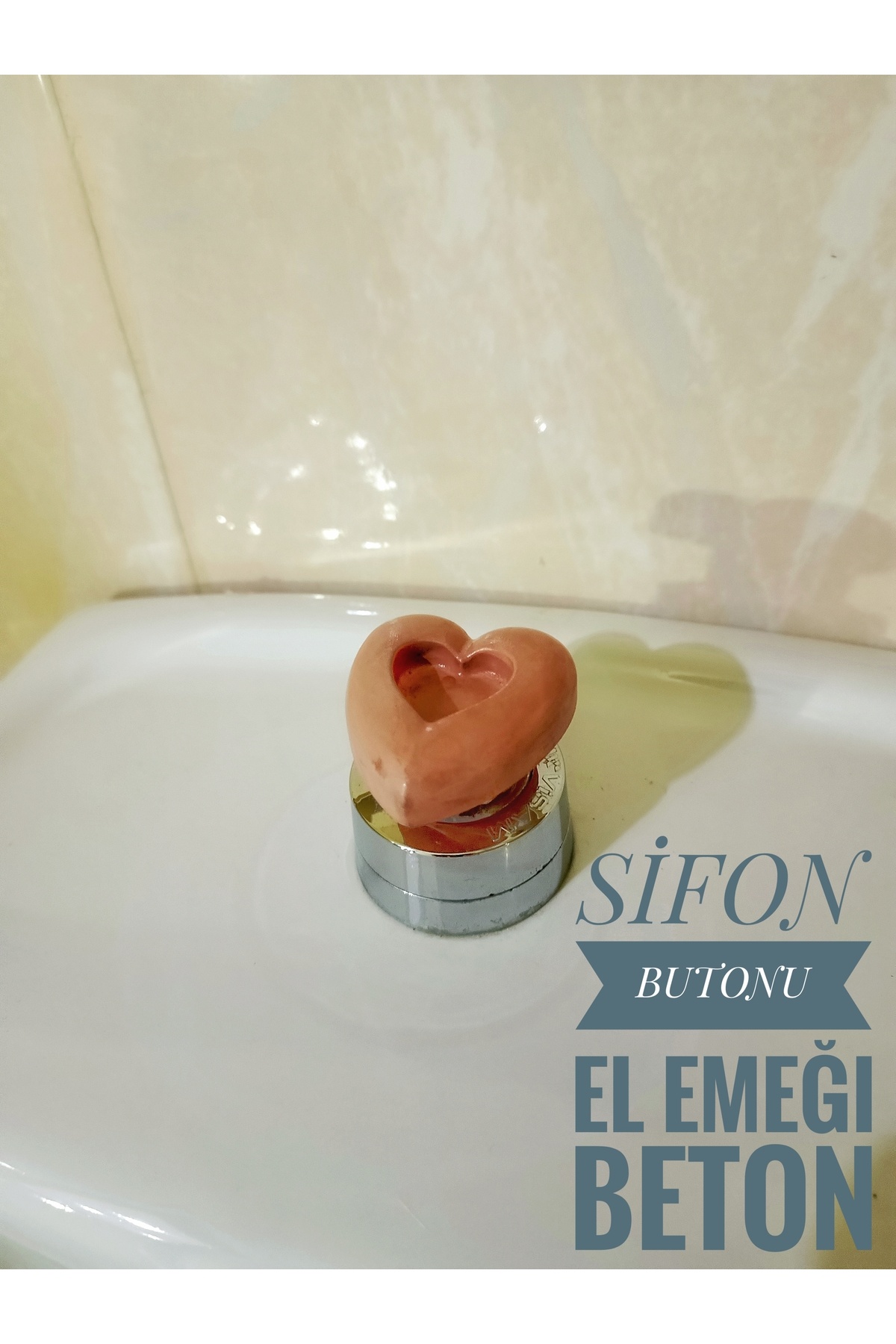 Klozet Rezervuar Basma Butonu Sifon Tuşu Sifon Düğmesi El Emeği Beton Kalp