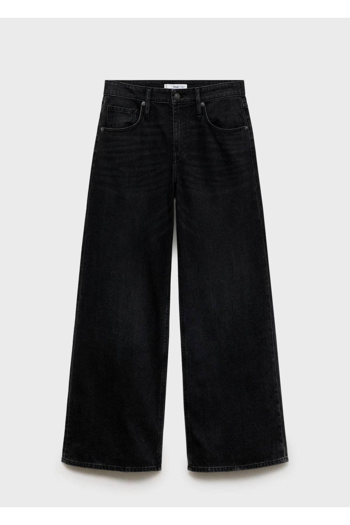 Pamuklu denim tarzı kumaş, Uzun tasarım, Wideleg tasarım, Düşük bel, Kemer halkaları, Beş cep, Ön fermuar ve düğme kapama, Model 1.79 cm boyunda olup S/36 beden giymektedir, İç uzunluk 80,5 cm.
