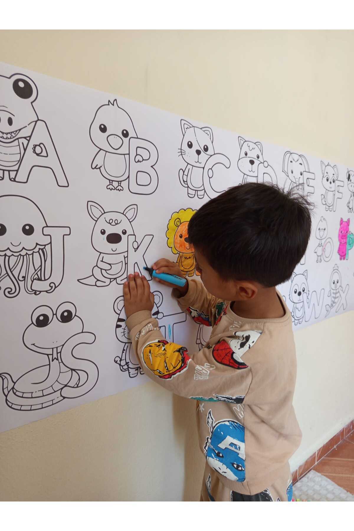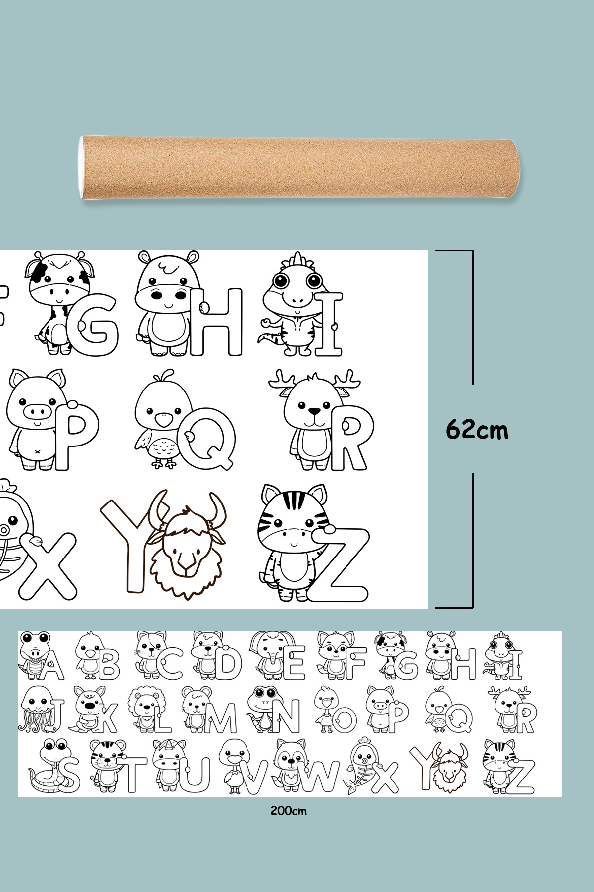 - 2 yaş ve üzeri çocuklar için ideal, şirin hayvan temalı dev alfabe boyama rulosu.