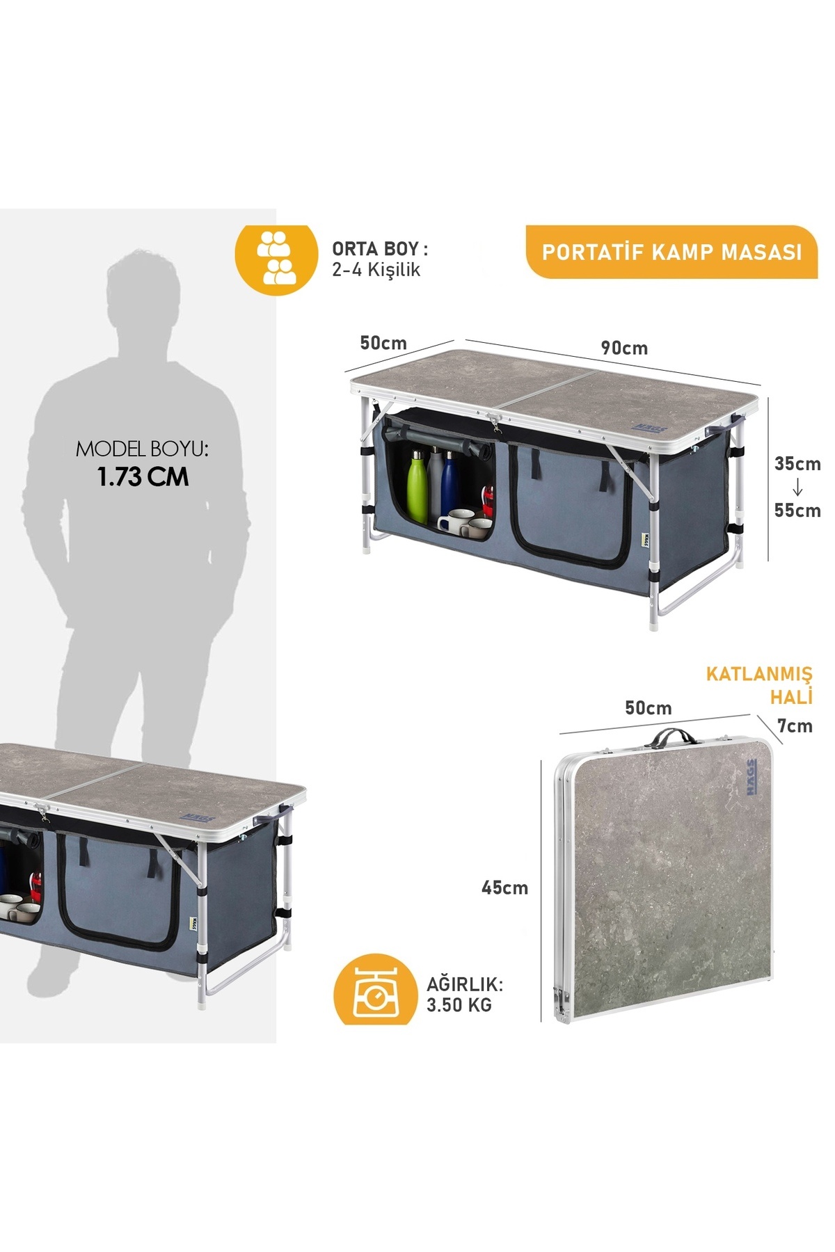 Saklama Dolaplı Kamp Masası, Mutfak Dolabı, Katlanabilir Piknik Masası 90x50cm Mermer Desenli
