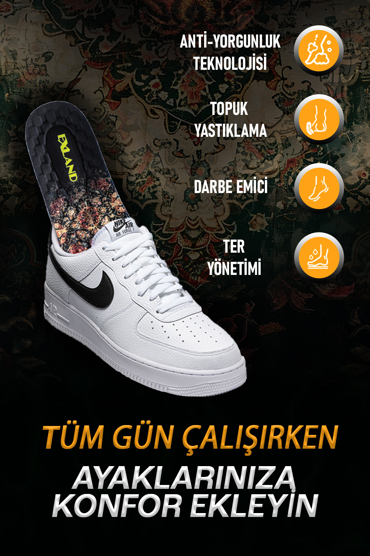 Yumuşak ve Konforlu: Darbe emici yapısı sayesinde uzun süre ayakta kalmayı kolaylaştırır.