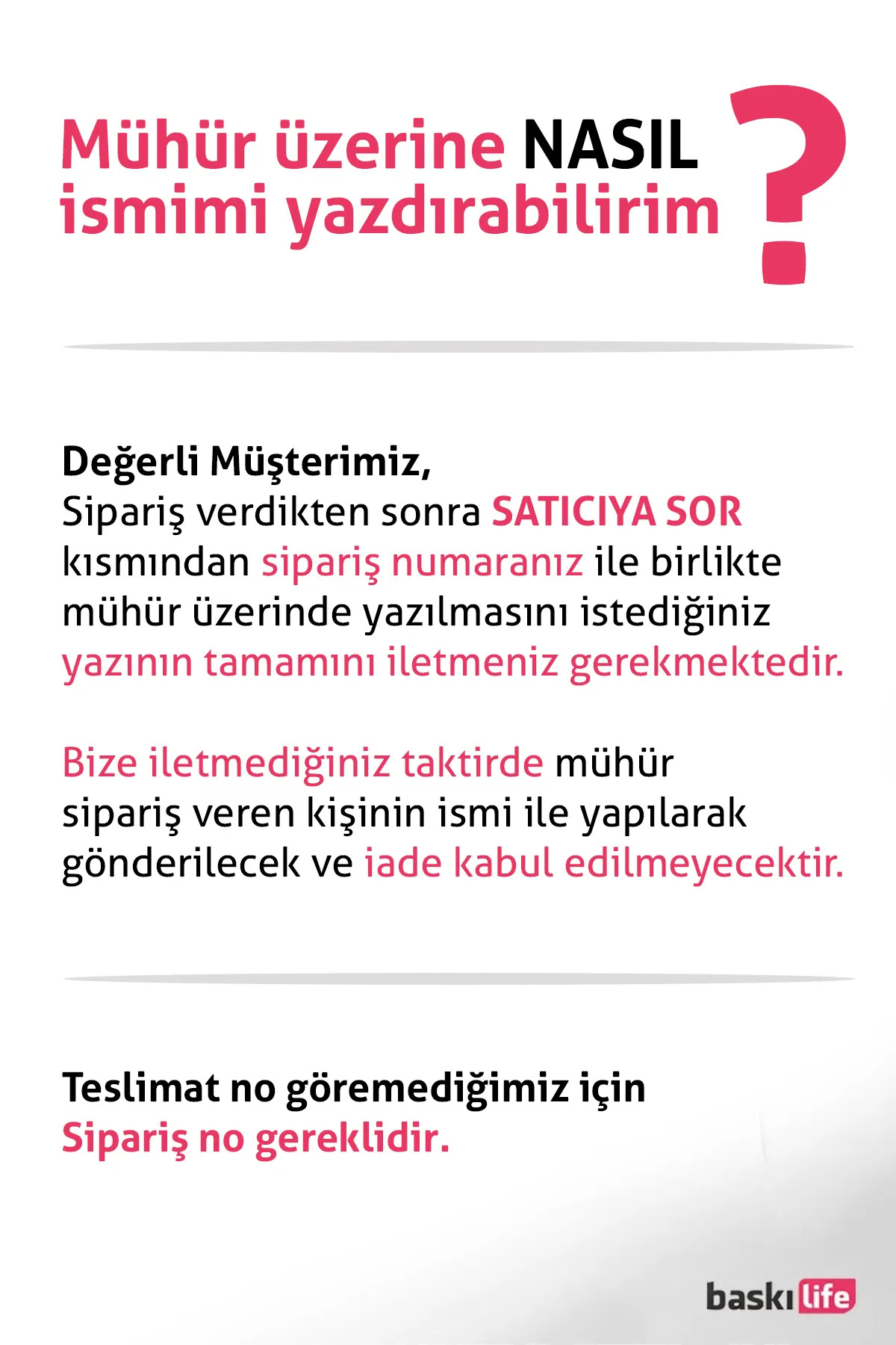 • * Mühür üzerine yazılacak yazıyı SİPARİŞ KODU İLE BİRLİKTE satıcıya soru sor kısmından belirtiniz.